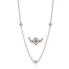 This charming necklace features a clover design with clusters of sparkling diamonds.