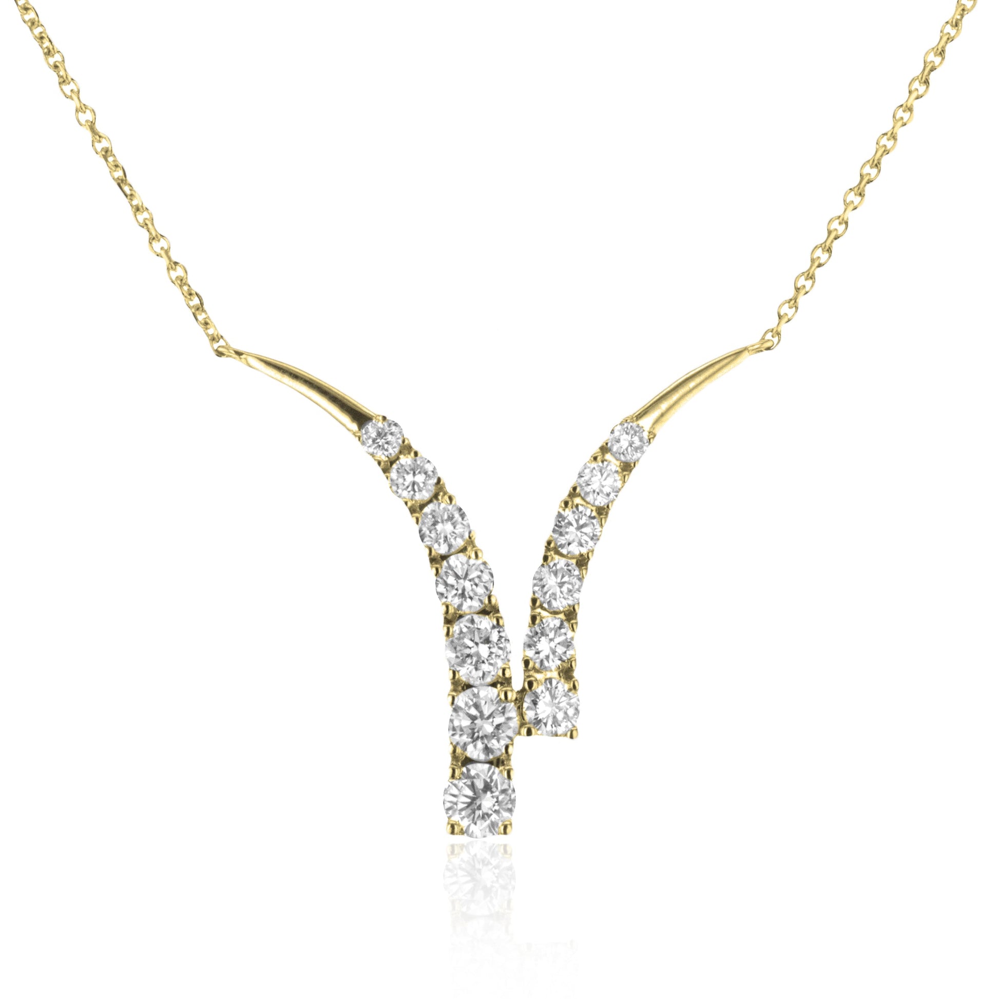 This necklace features a graceful "Y" design with rows of sparkling round diamonds cascading down the center. Its elegant drop style adds sophistication and brilliance, perfect for both formal and special occasions.