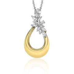 This lovely pendant features an intricate design with a dazzling combination of marquise and pear diamonds.