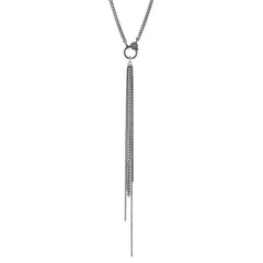 Oxidized Silver Pendant 0.74tw Round G/H In Color SI-1 In Clarity Diamonds Style: Curb BY SHERYL LOWE N0000030Pave Diamond Clasp and Chain Fringe.
