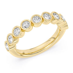 A flat band with alternating marquise diamonds and gold beads. Clean and modern, this band can be worn as a shadow band or as a stackable.