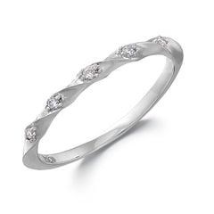 A twisting pattern with diamonds and loops, this ring fits up next to engagement rings, or can be worn alone. Beautiful in rose, yellow or white.