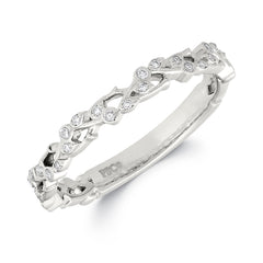 Twisting pattern with scattered diamonds. Can be made with yellow, rose, or white.