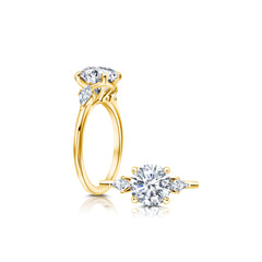 A classic twist on a three stone ring, this ring features two kite diamonds sitting on either side of your chosen center. Great for any shape center.