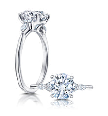 A classic twist on a three stone ring, this ring features two marquise and four round diamonds sitting on either side of your chosen center. Great for any shape center.