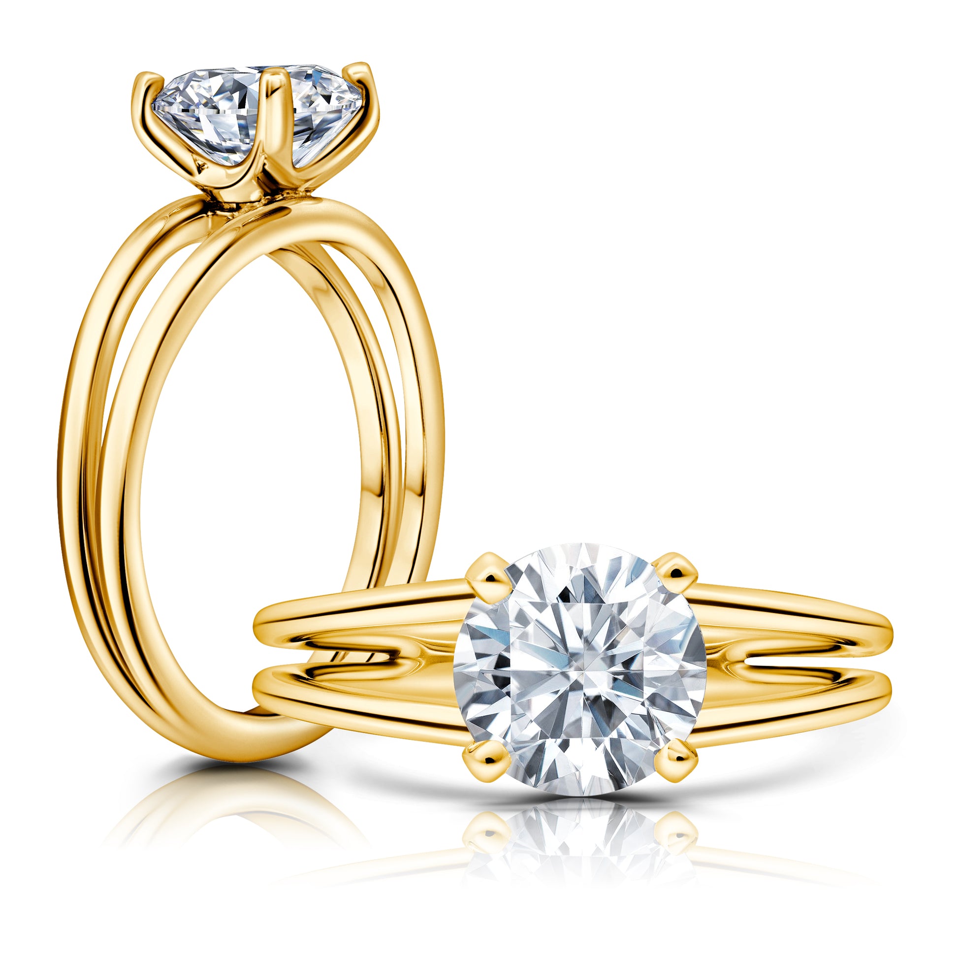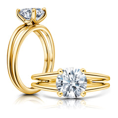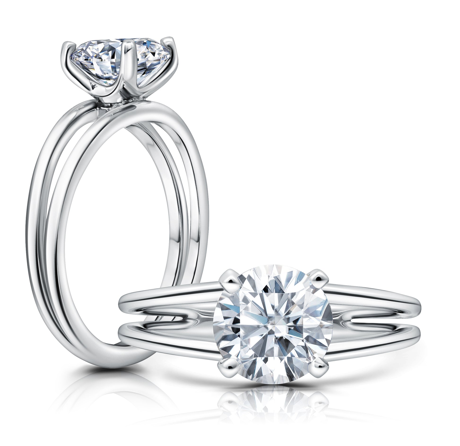 A rounded split shank combined with a cub head. Great for round, oval, and emerald cut center stones.