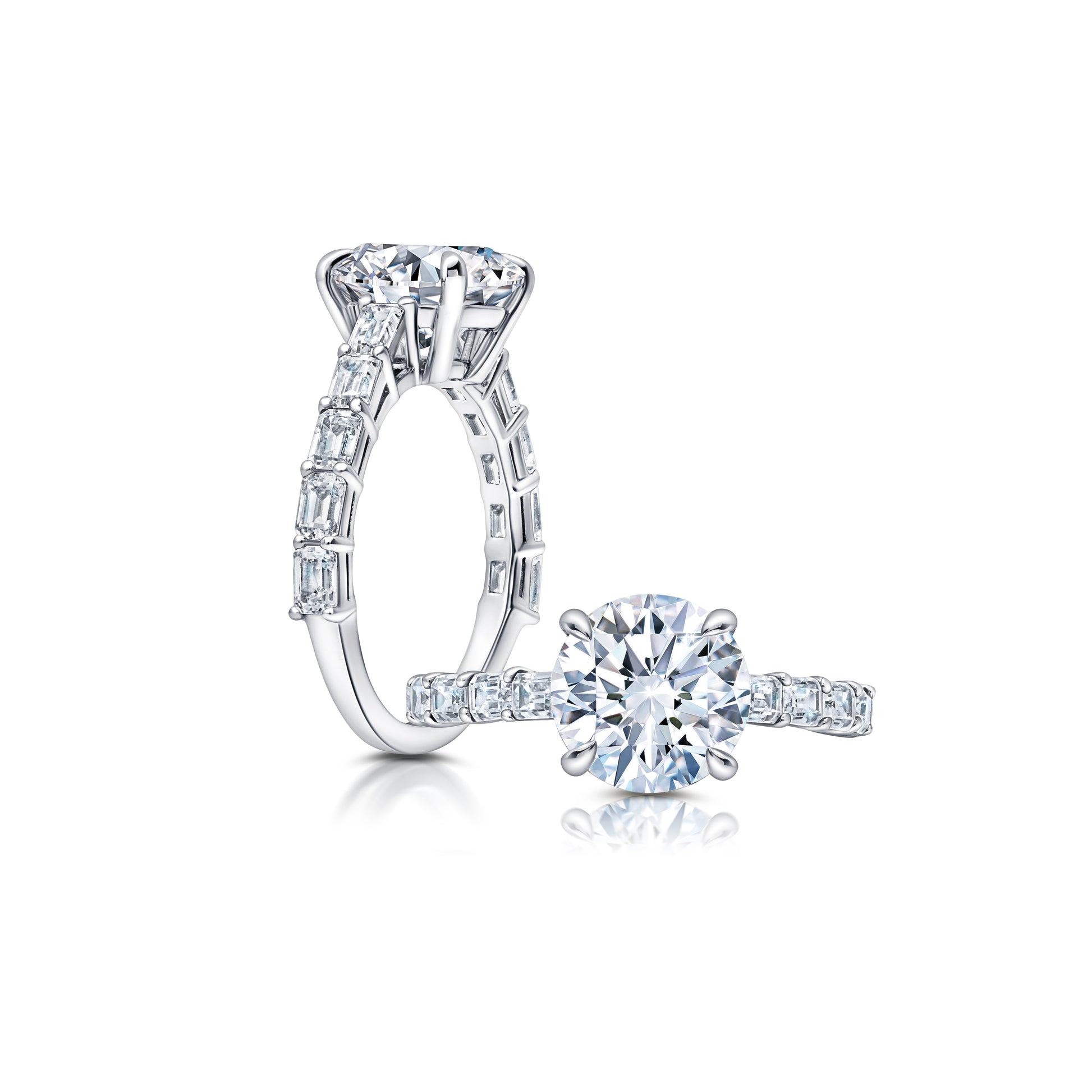Climbing diamonds lead up to a showstopper center. A great way to have a modern clean all diamond statement.
