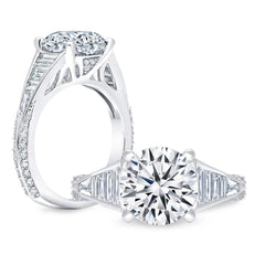 One of the most dramatic Peter Storm ring. 5 baguettes graduated to draw your eye to the center. Euroshank for comfort and balance. Comes in blue sapphire.