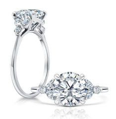 Peter adds a modern flair to this cluster three stone ring. A two marquis flanked by a round makes a unique and modern pairing for your chosen center,