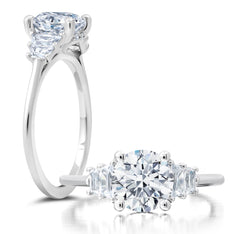 Peter adds a modern flair to this trapezoid three stone ring. The high polish shank helps to add focus to your chosen center.