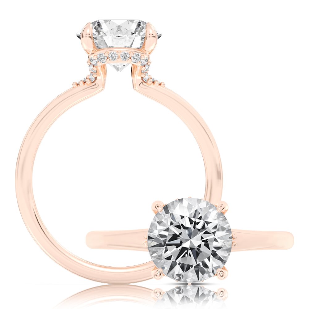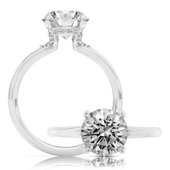 This charming ring showcases a delicate flower-shaped halo encircling a brilliant round center stone, adding a touch of whimsy and sparkle to your look. Its playful design makes it a delightful accessory for everyday wear or special occasions, bringing a subtle yet captivating elegance to your style.