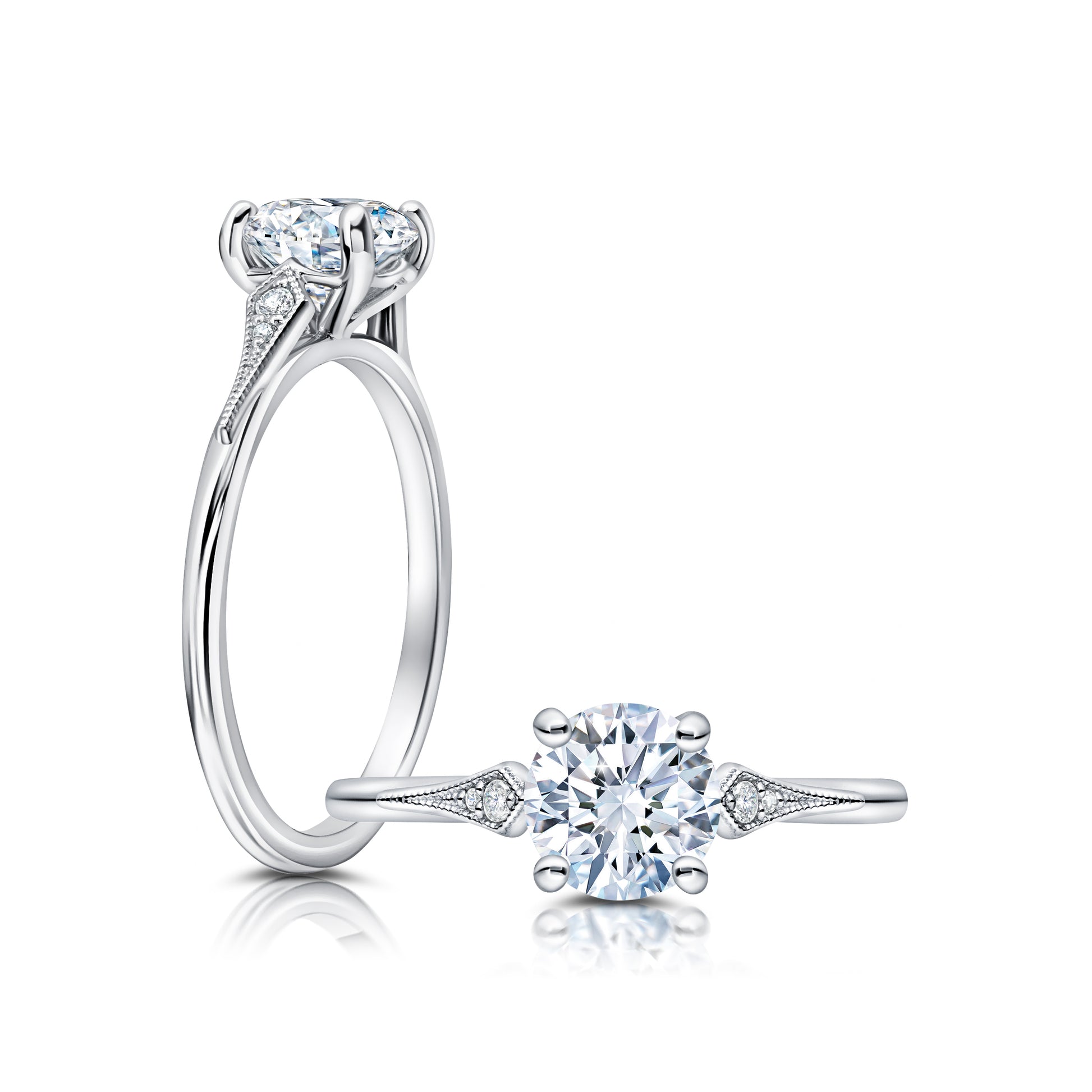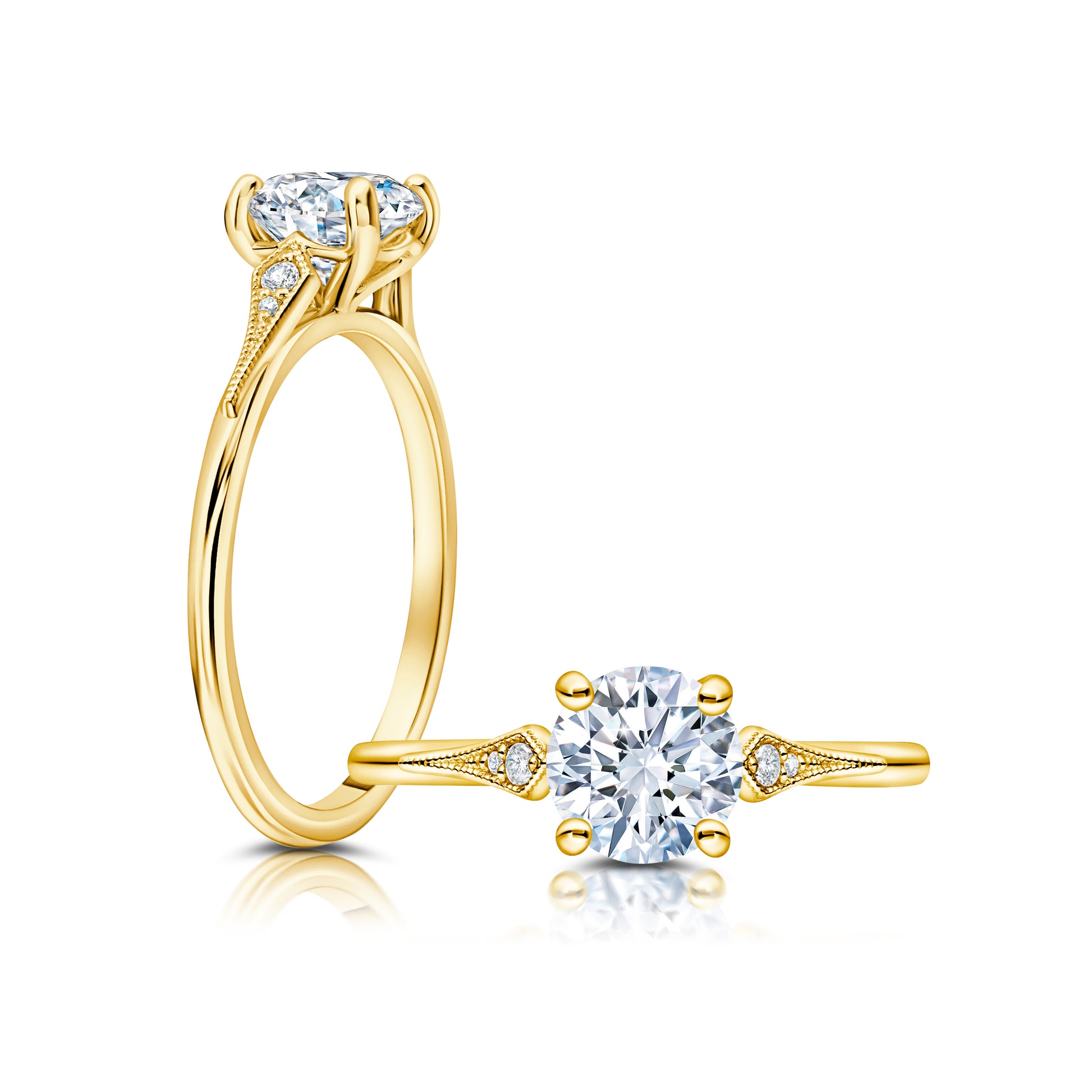This radiant ring showcases a delicate flower-shaped halo surrounding a luminous round center stone. Its elegant design captures light beautifully, adding a touch of charm and sophistication to any outfit. Perfect for celebrating special moments or adding a graceful accent to your everyday look.