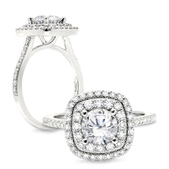 This ring features a double halo that creates a cushion shape around your round center WSM333_4DBlW