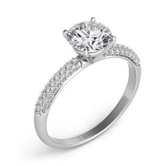 This Engagement Ring is available in 14K White Gold. There are a total of 50 stones. There are Rounds with a total carat weight of 0.33 set in a Micro Pave setting.