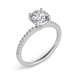 This Engagement Ring is available in 14K White Gold. There are a total of 18 stones. There are Rounds with a total carat weight of 0.14 set in a Micro Prong setting.