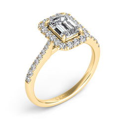 This Engagement Ring is available in 14K Yellow Gold. There are a total of 38 stones. There are Rounds with a total carat weight of 0.51 set in a Micro Prong setting.