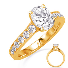 This Engagement Ring is available in 14K Yellow Gold. There are a total of 12 stones. There are Rounds with a total carat weight of 0.54 set in a Micro Prong setting.