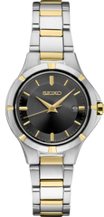 From the Essentials Collection. Offering classic designs, the Essentials Collection provides the ideal solution for all-day wear. With precisely sculpted stainless steel case and bracelet in versatile two-tone finish, this perfectly minimalist watch features a rich charcoal sunray dial with gold hands and stick markers, as well as a date calendar, for a superb blend of clarity and style. 10 bar, 100M Water Resistant