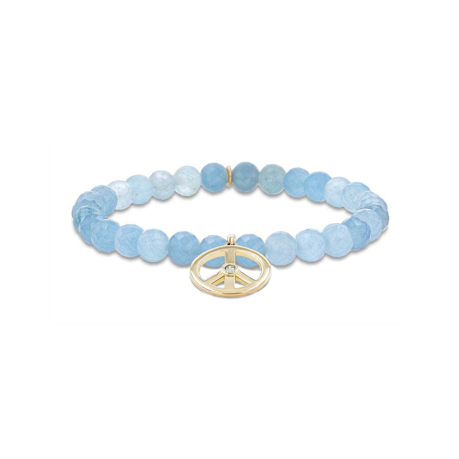 14k Aquamarine Bracelet with Peace Sign Charm - 6mm