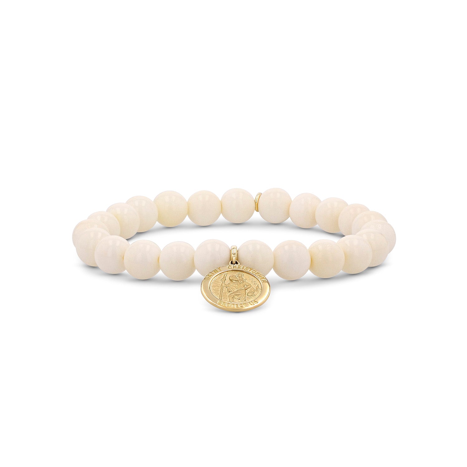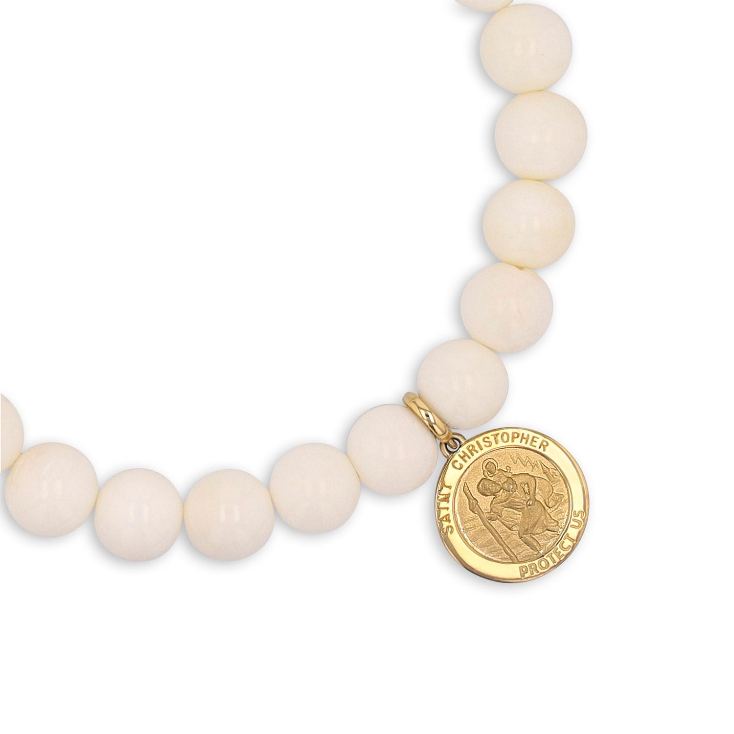 14k Bone Bracelet with St. Christopher Charm - 8mm