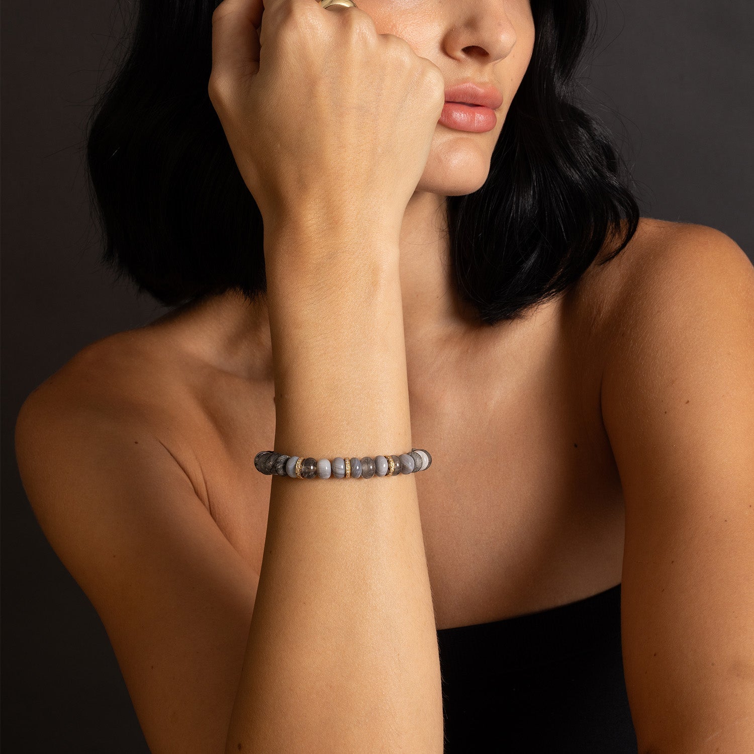 14k Charcoal Gemstone Mix Bracelet with Diamond Rondelles - 8mm