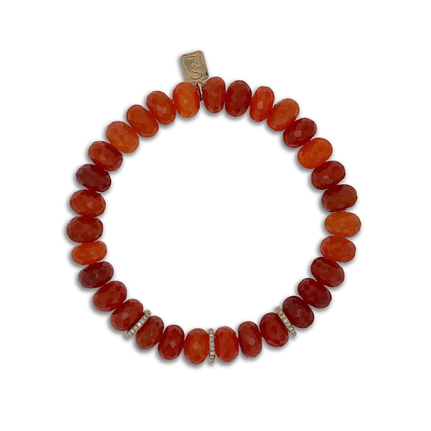 14k Dark Carnelian Bracelet with Diamond Rondelles - 8mm