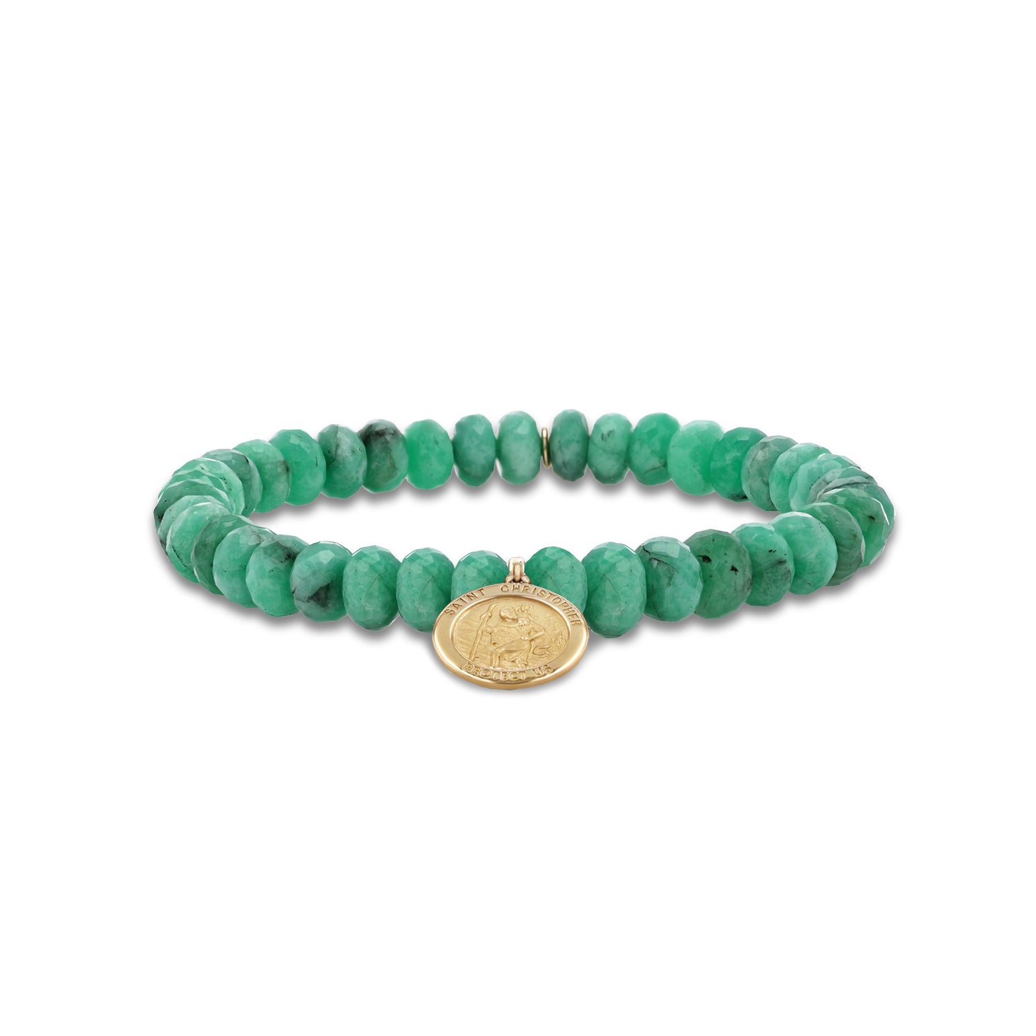 14k Emerald Bracelet with St. Christopher Charm - 7mm
