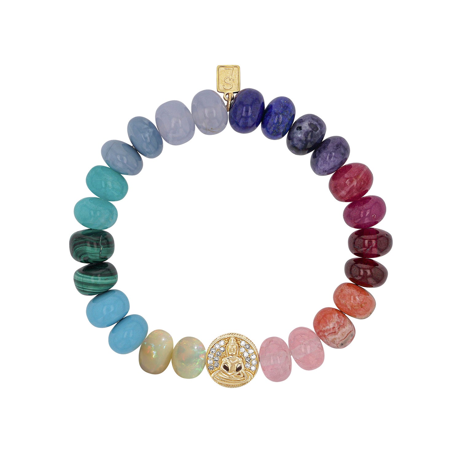 14k Gold and Gemstone Meditation Bracelet- 10mm