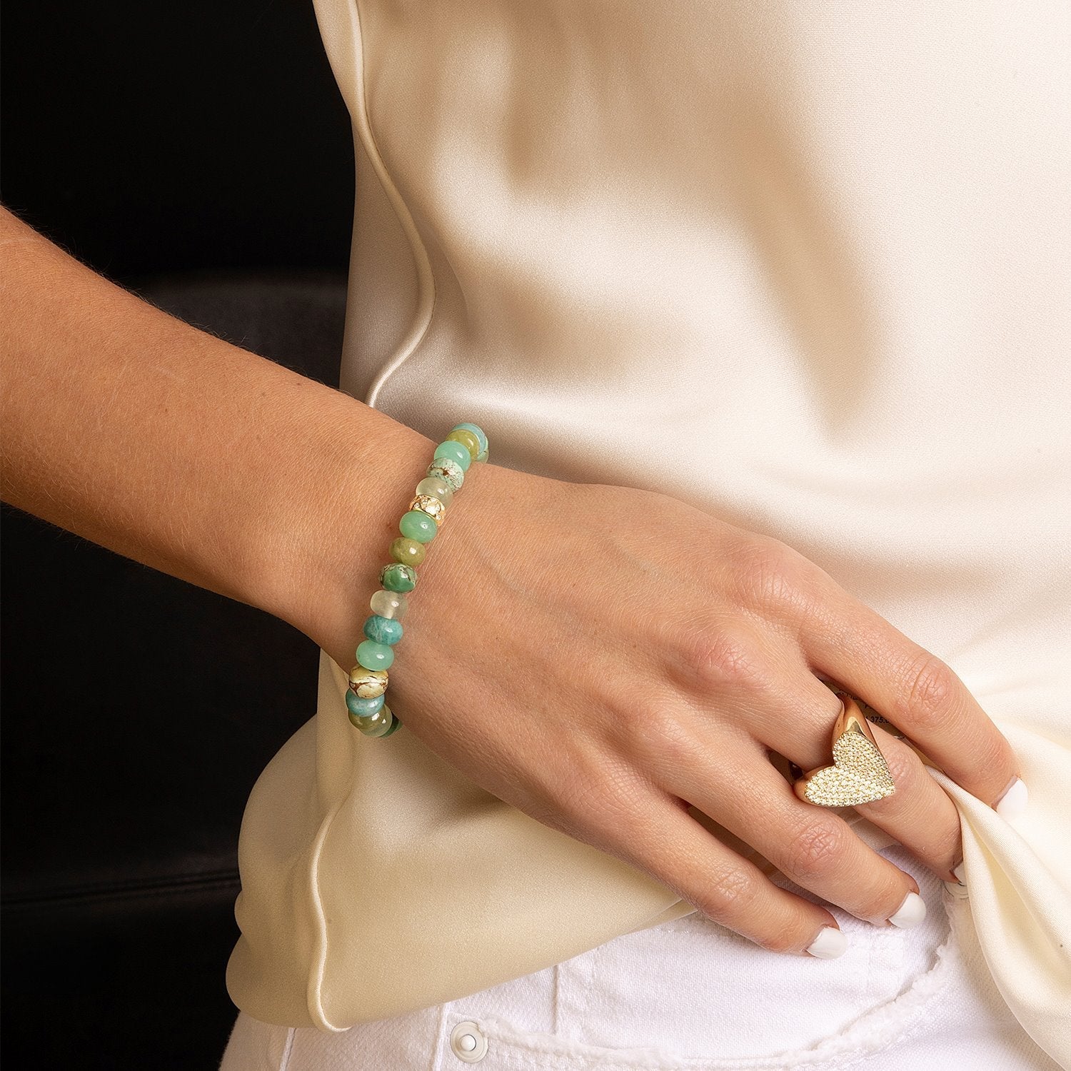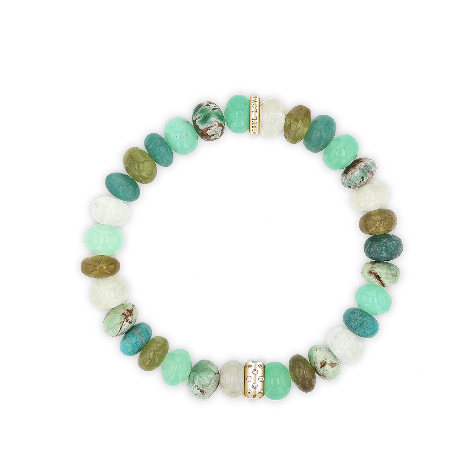 14k Green Mix Gemstone Beaded Bracelet with Diamond Rondelle - 8mm