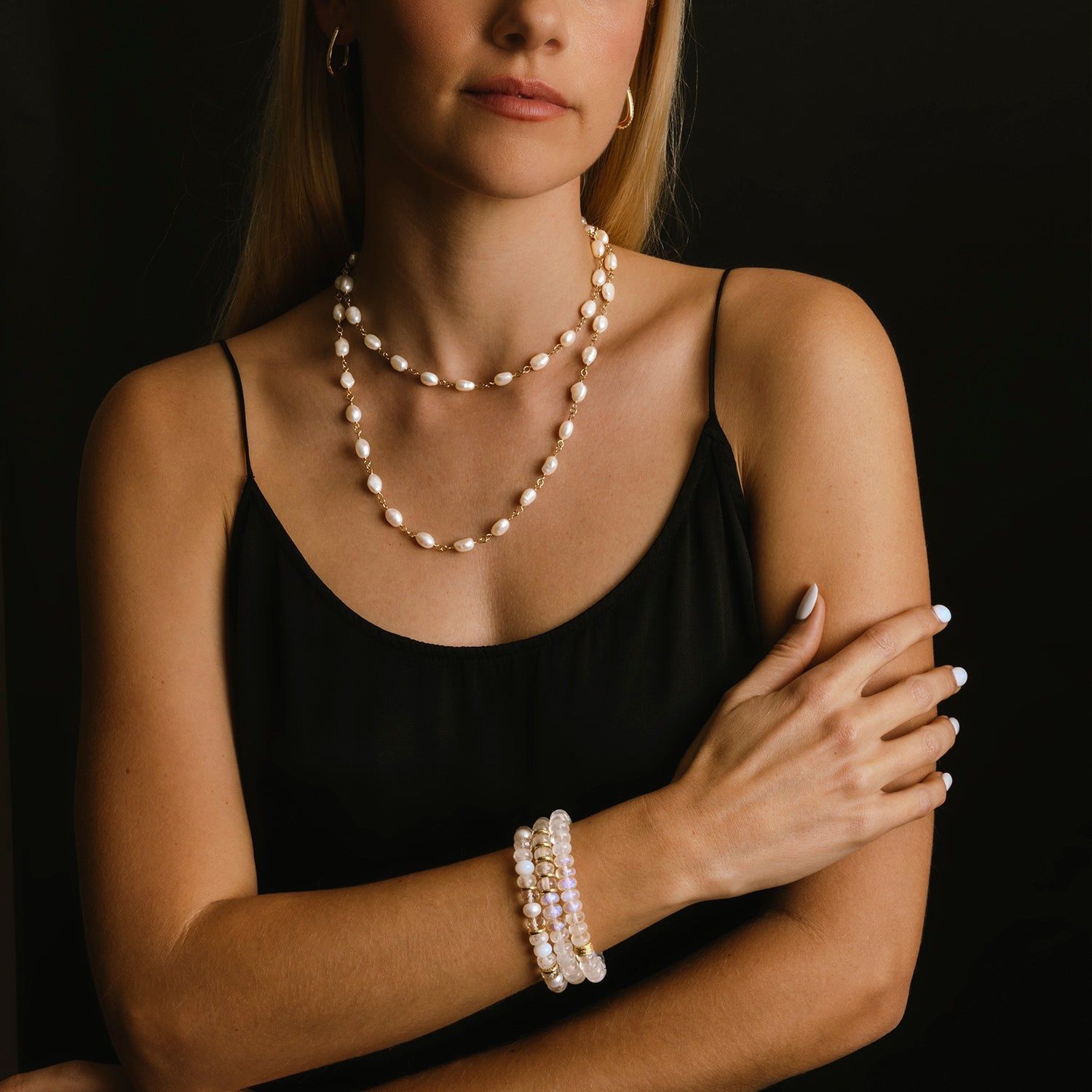 14k Moonstone Beaded Bracelet with 5 Rondelles - 8mm