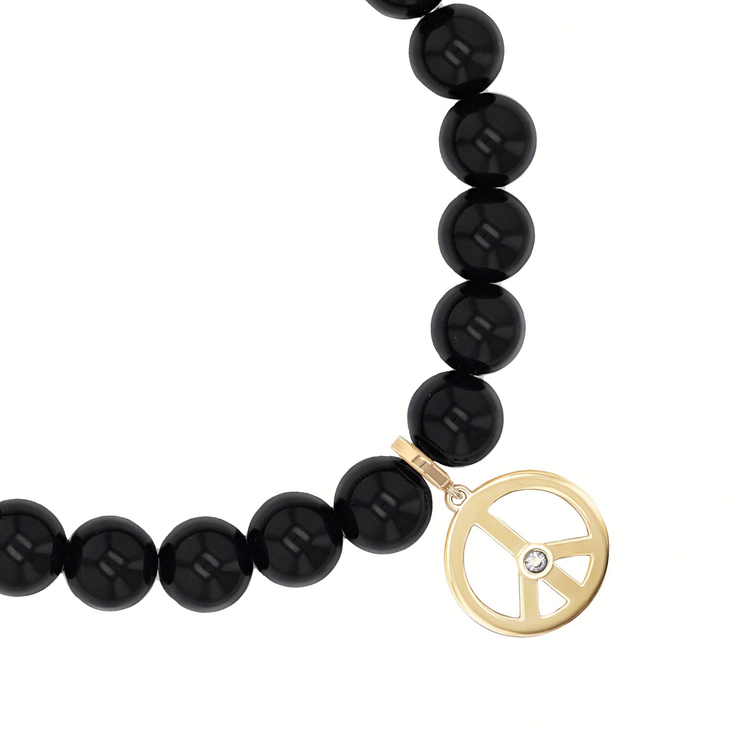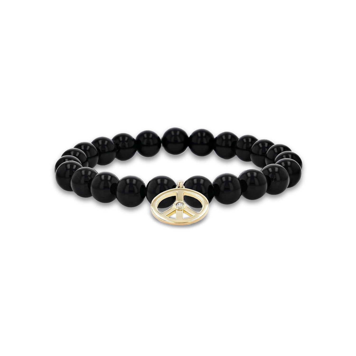 14k Onyx Bracelet with Peace Sign Charm - 8mm