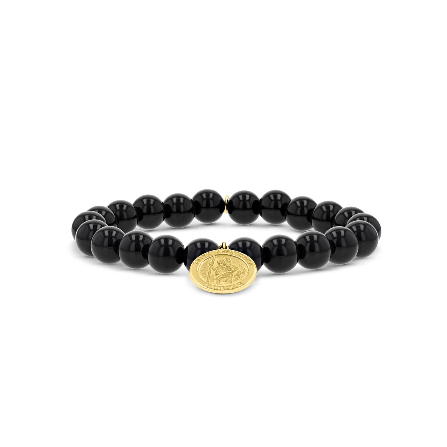 14k Onyx Bracelet with St. Christopher Charm - 8mm