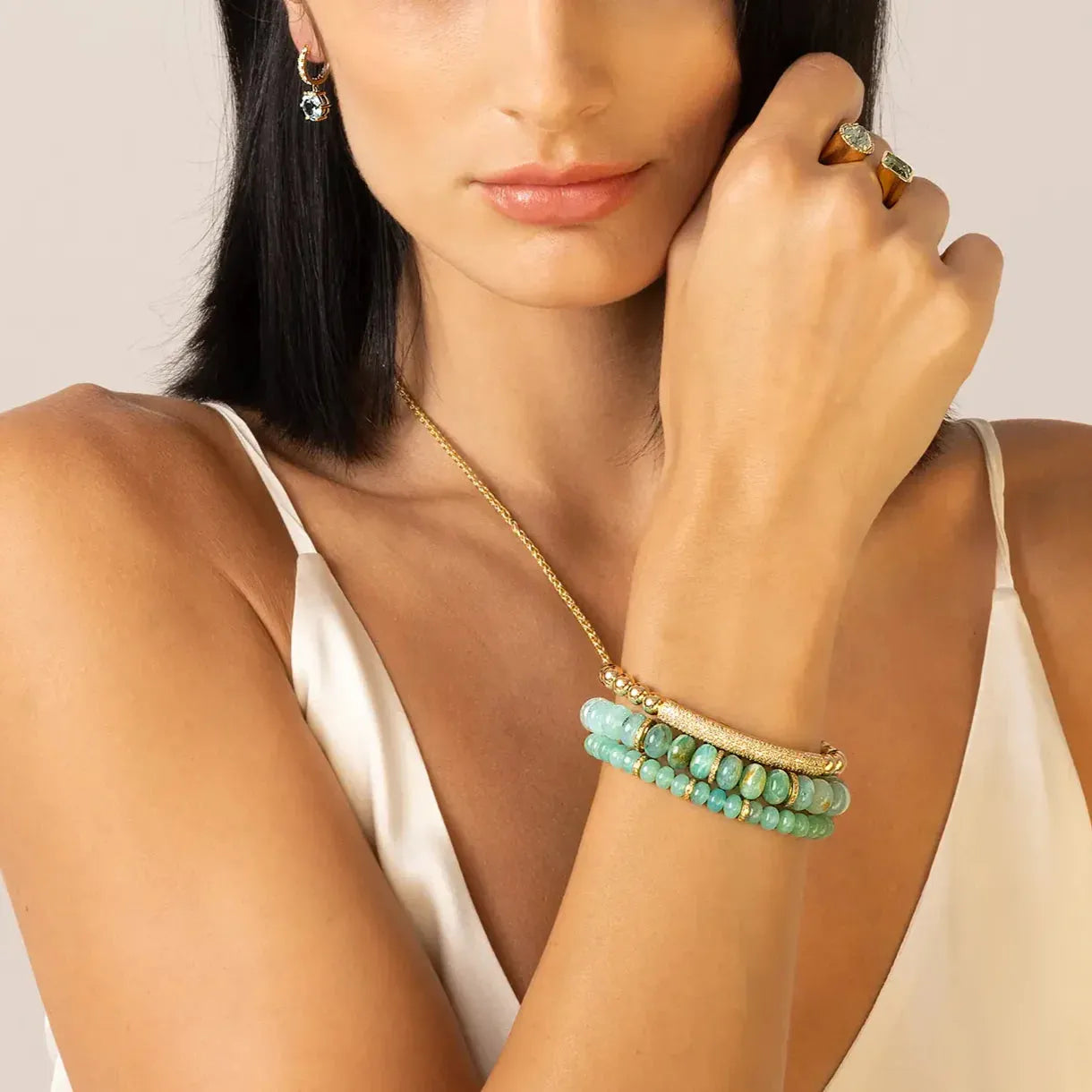 14k Peruvian Opal Beaded Bracelet with 3 Diamond Rondelles - 9mm