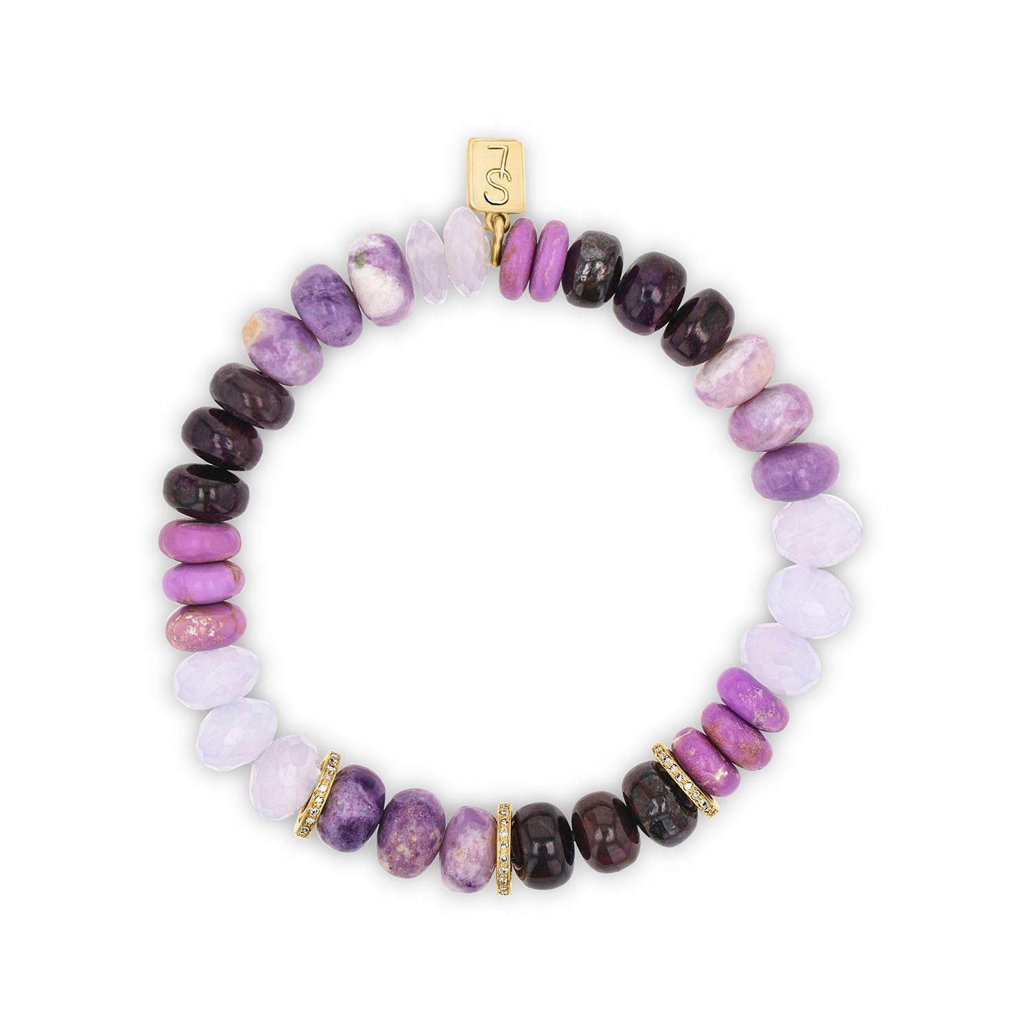 14k Purple Mixed Gemstone Bracelet with Diamond Rondelles