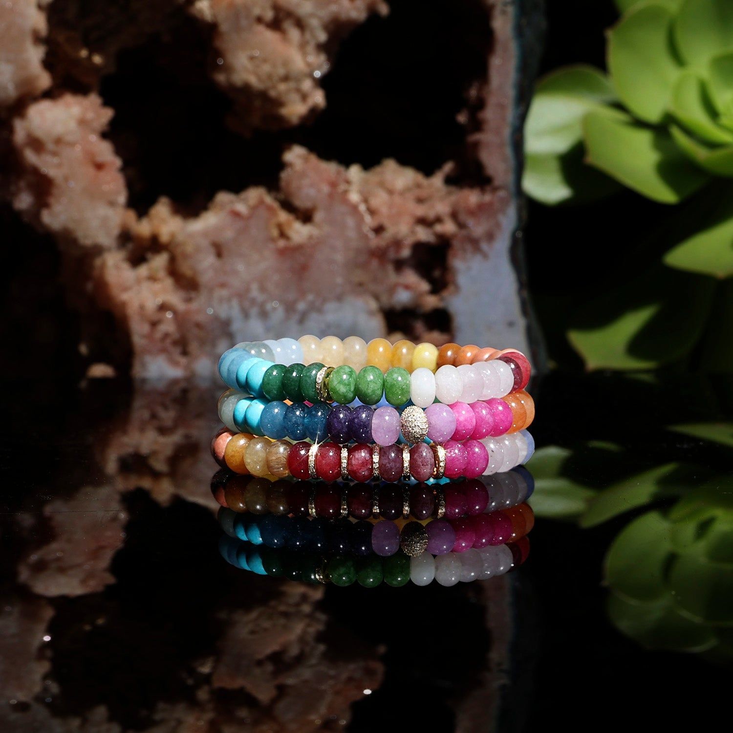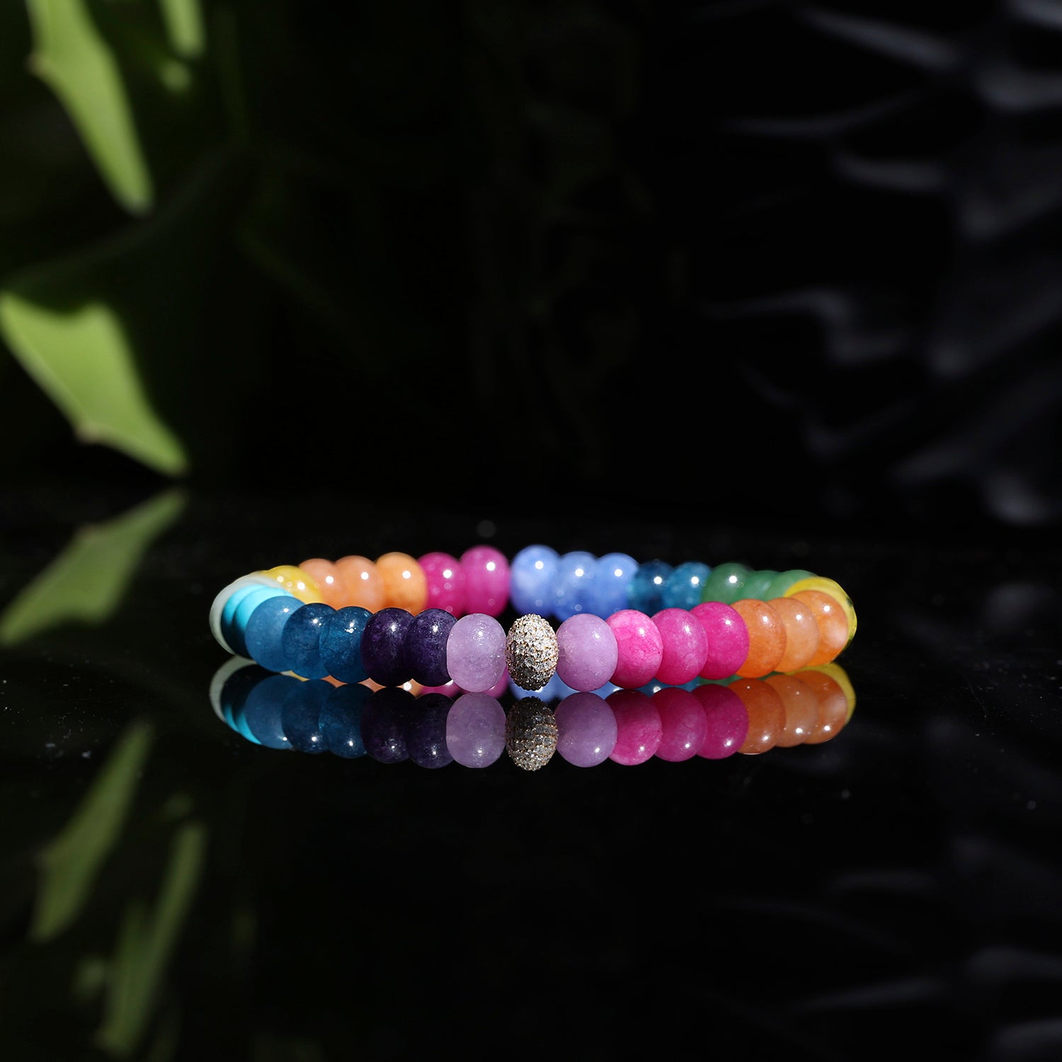 14k Rainbow Quartz Mix Bracelet with Diamond Donut - 7-8mm