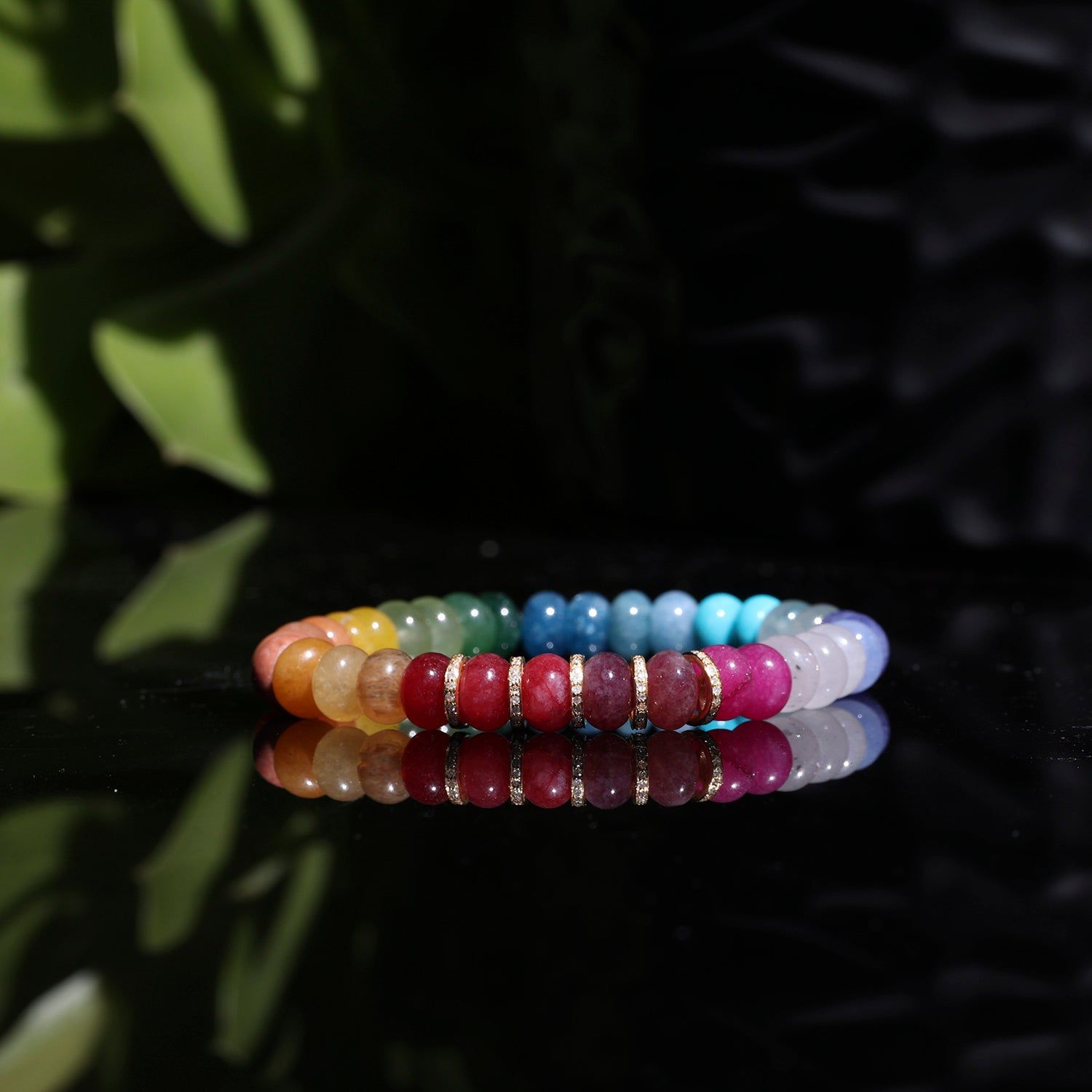 14k Rainbow Quartz Mix Bracelet with Diamond Rondelles - 7-8mm