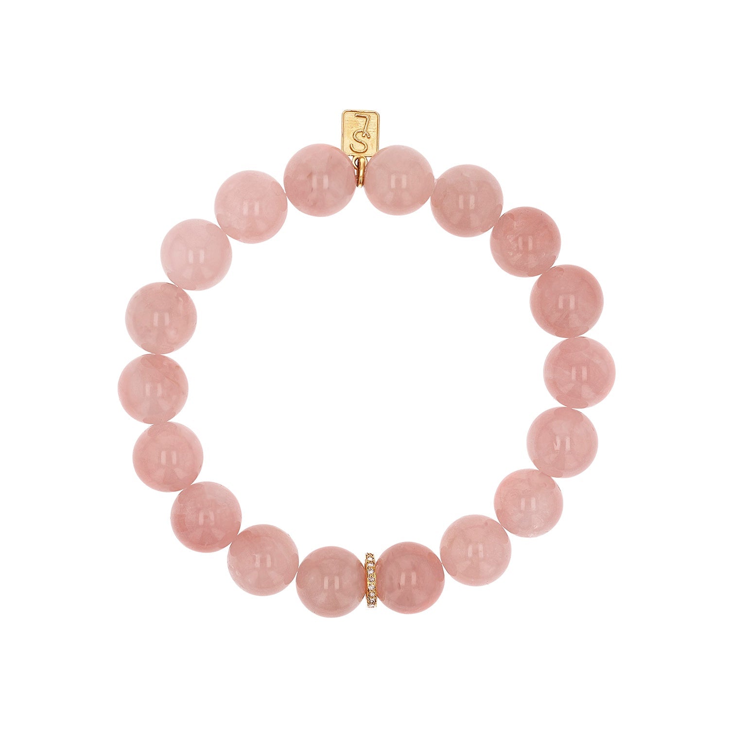 14k Rose Quartz Bracelet with 1 Diamond Rondelle - 10mm