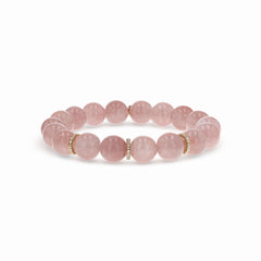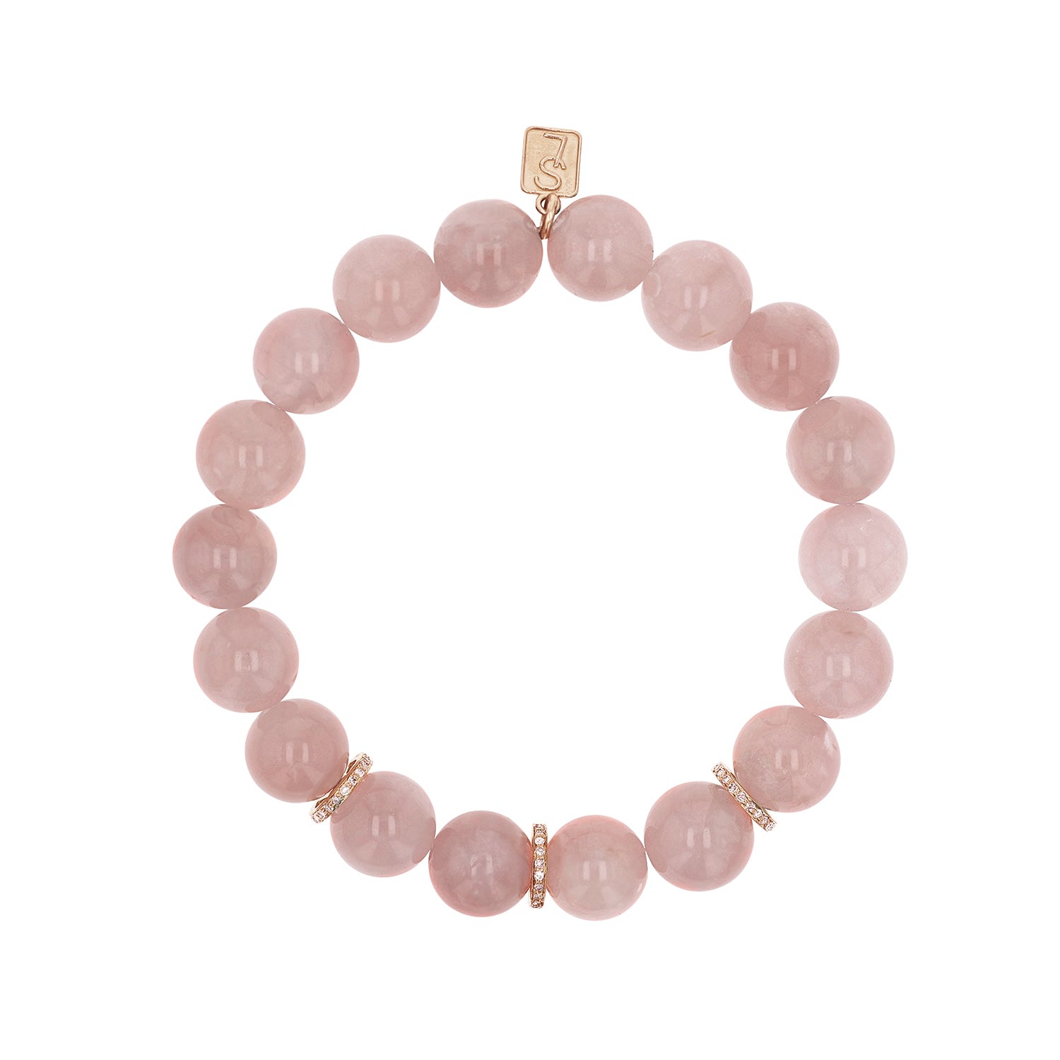 14k Rose Quartz Bracelet with 3 Diamond Rondelles - 10mm