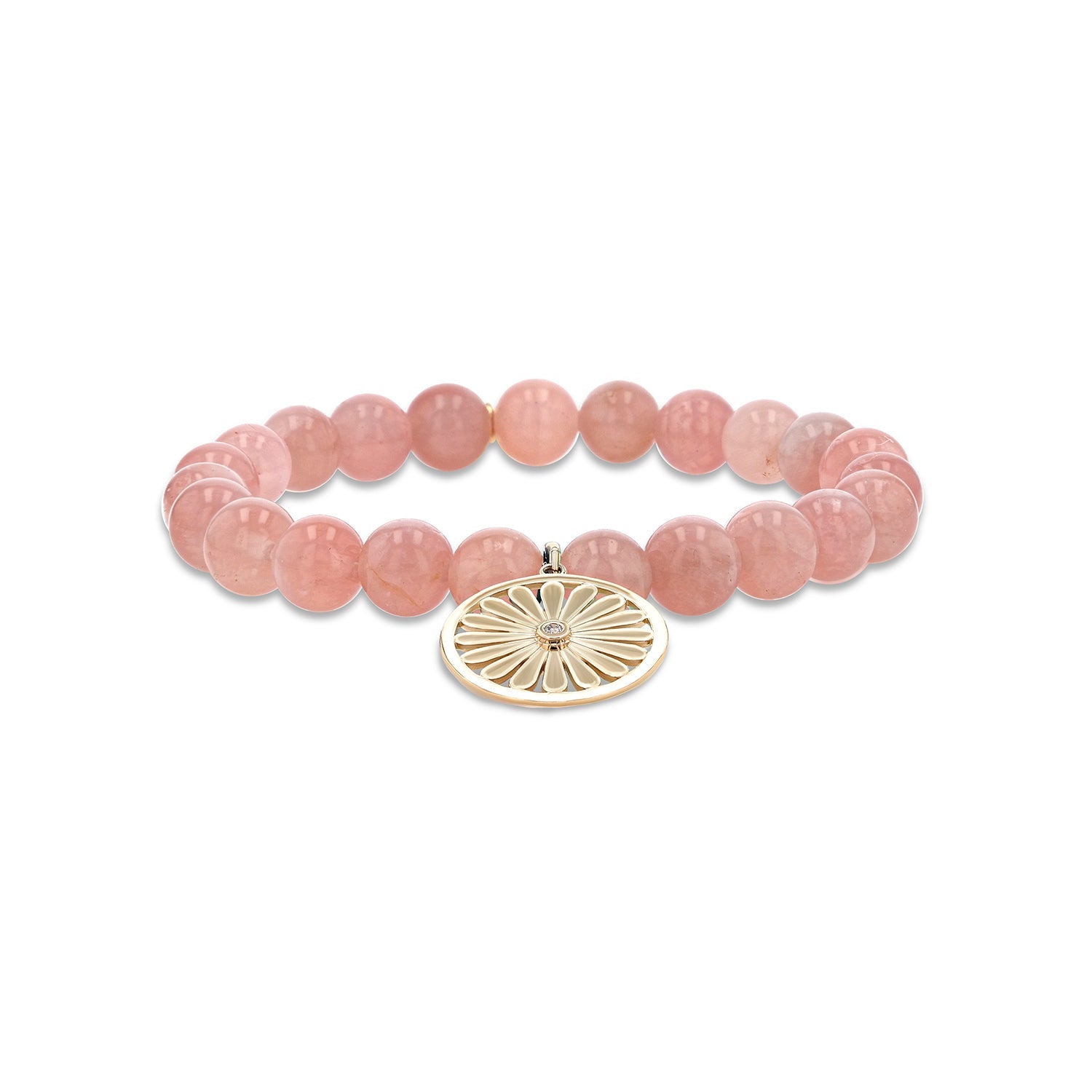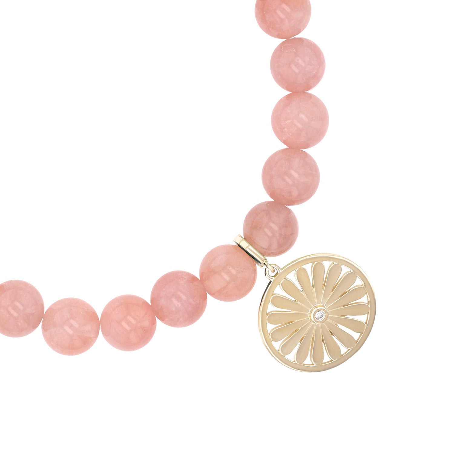 14k Rose Quartz Bracelet with Daisy Charm - 8mm
