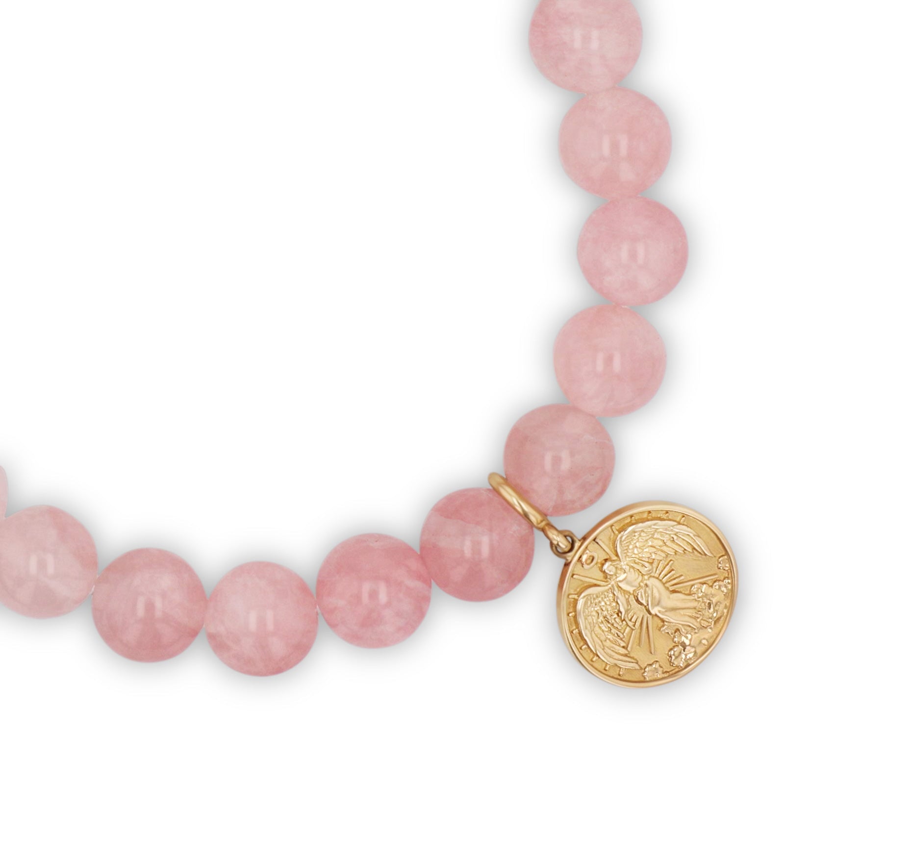 14k Rose Quartz Bracelet with Guardian Angel Charm - 8mm