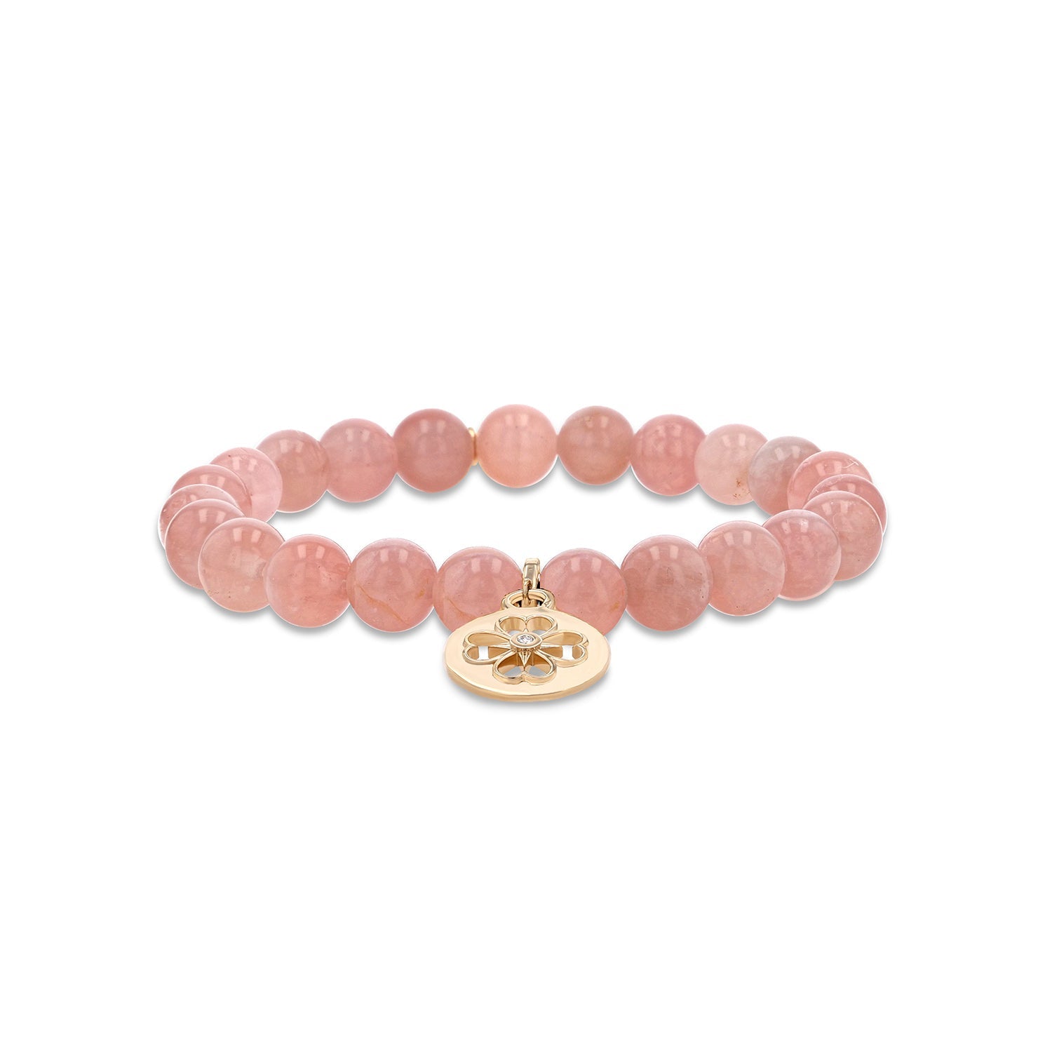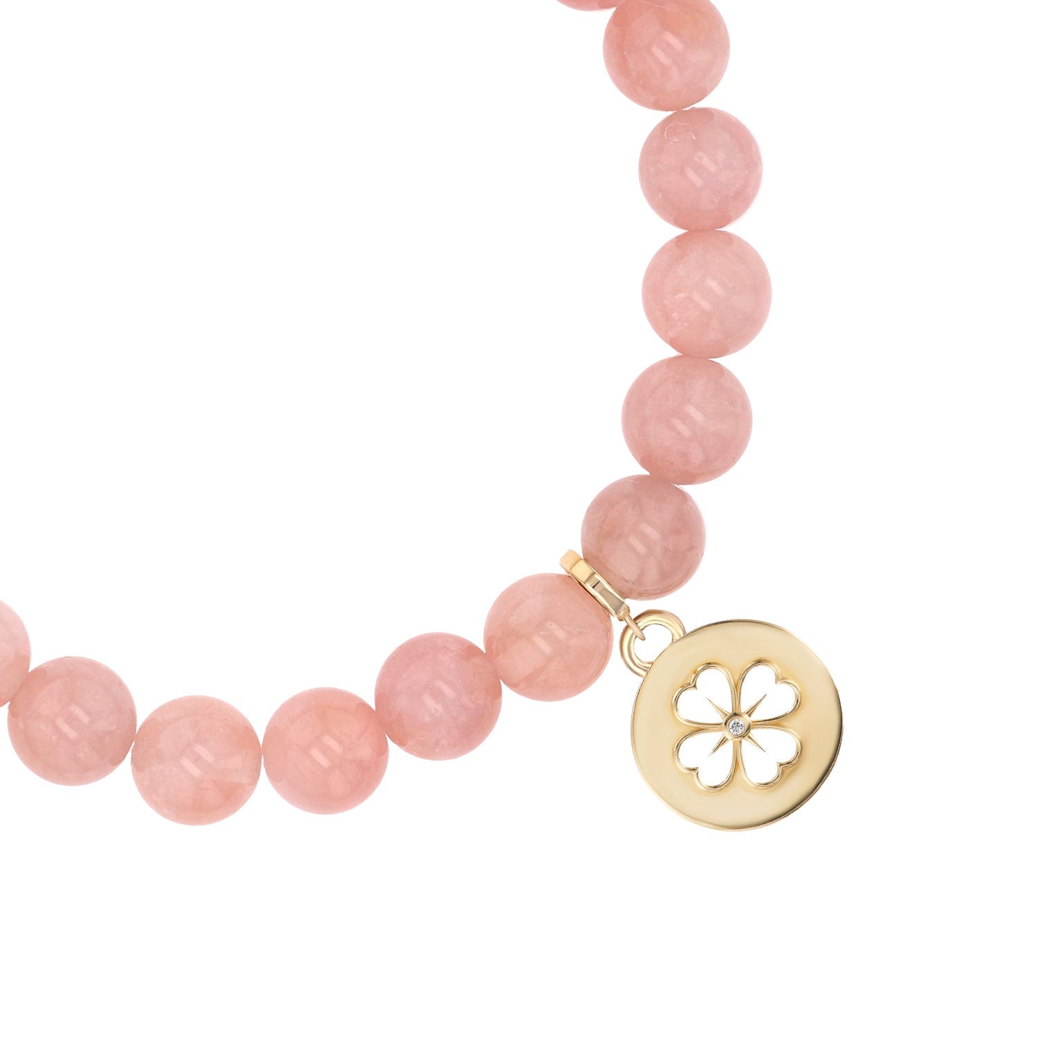 14k Rose Quartz Bracelet with Open Clover Charm - 8mm