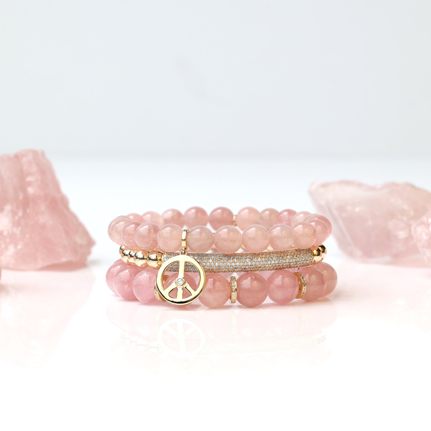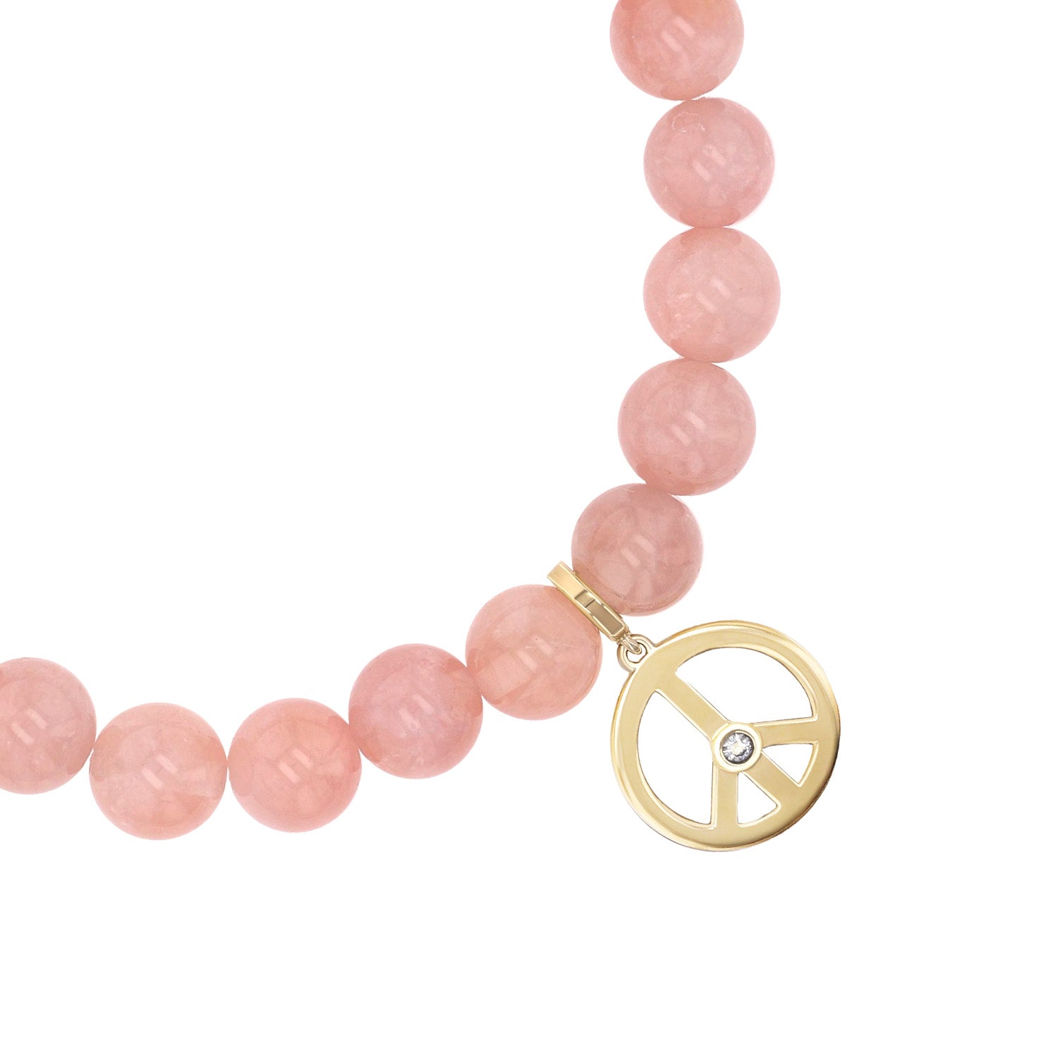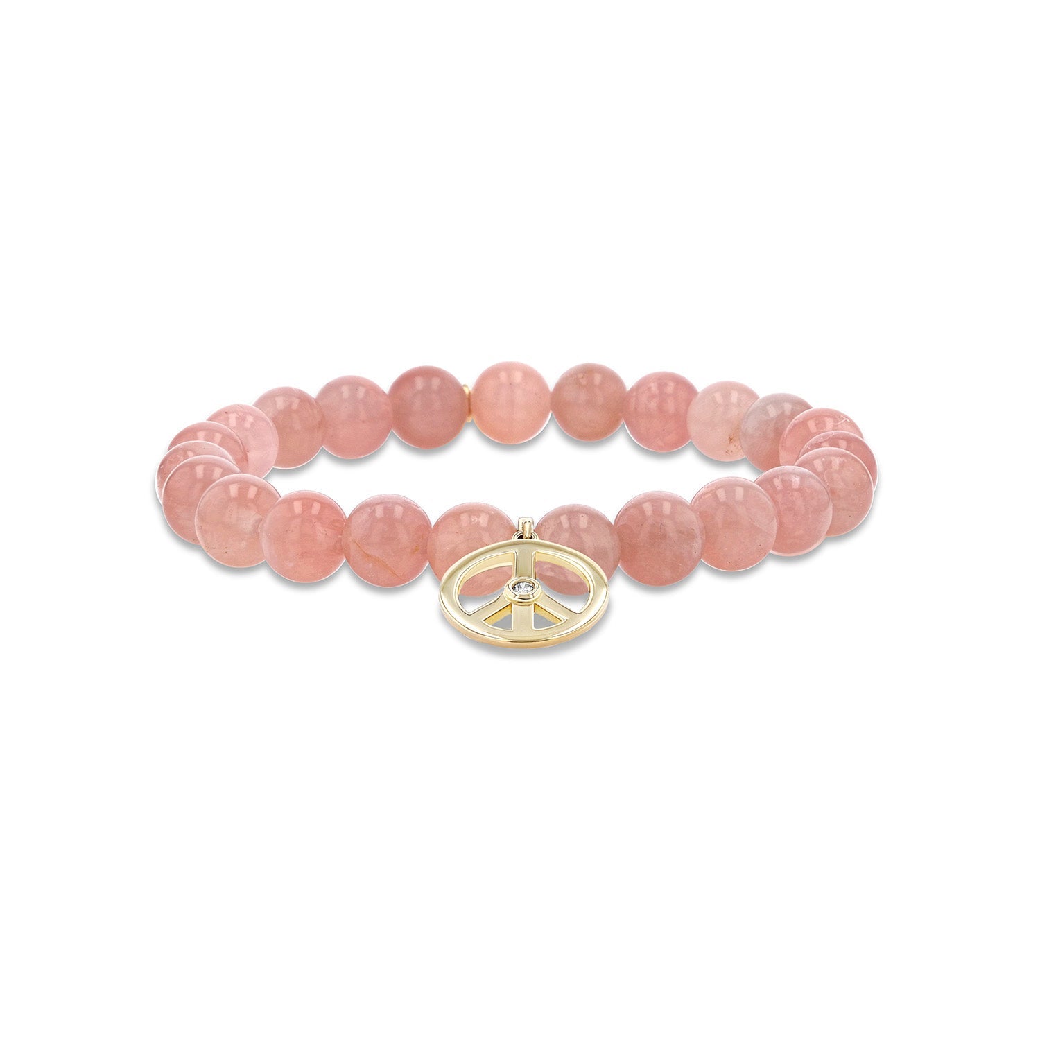 14k Rose Quartz Bracelet with Peace Sign Charm - 8mm
