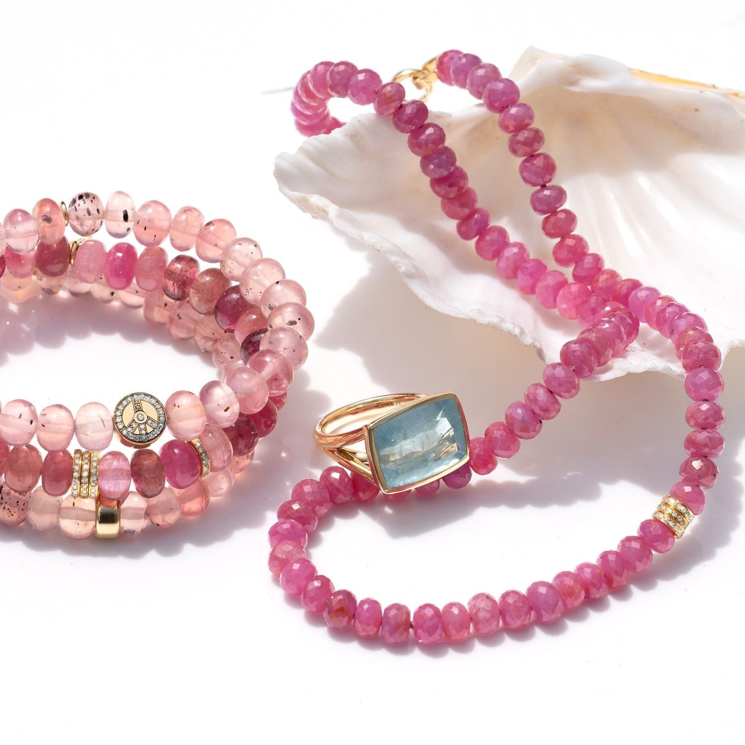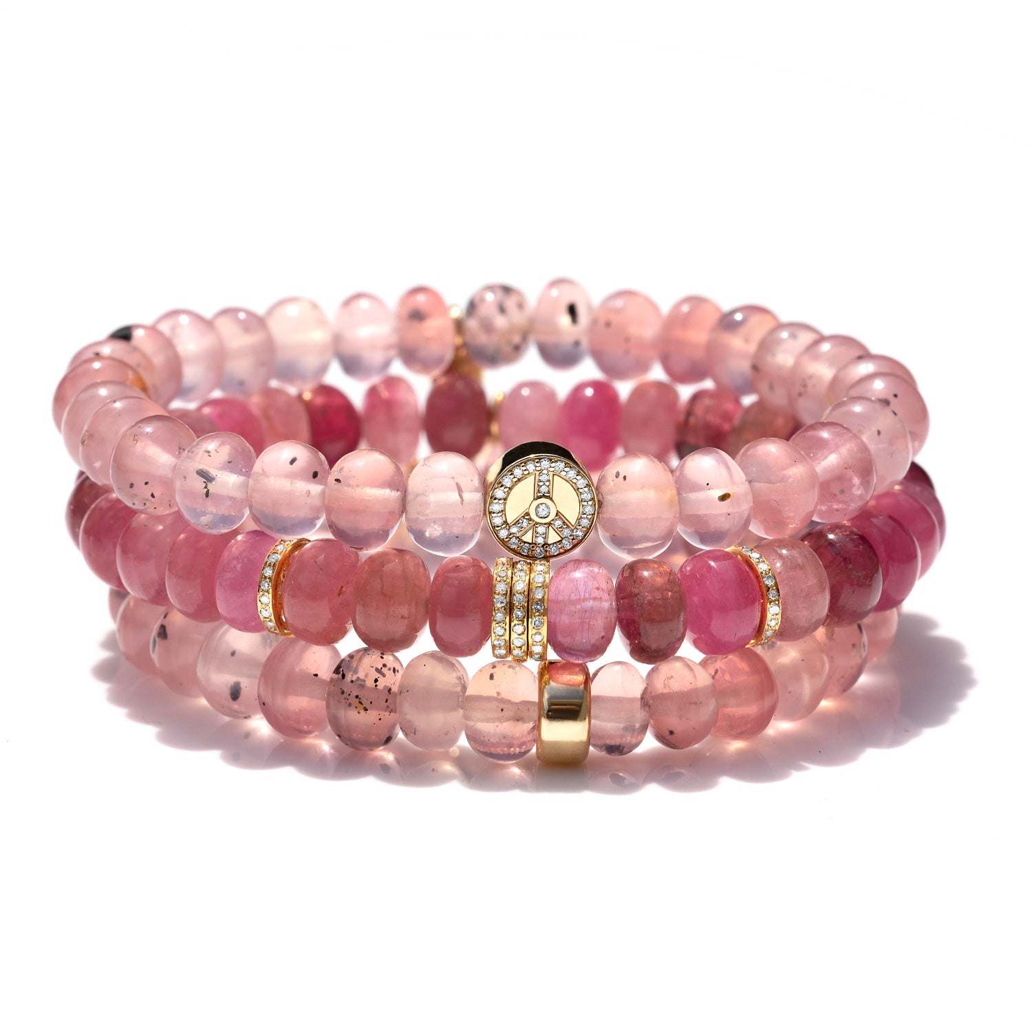 14k Rose Quartz with Inclusions Bracelet with Rondelle