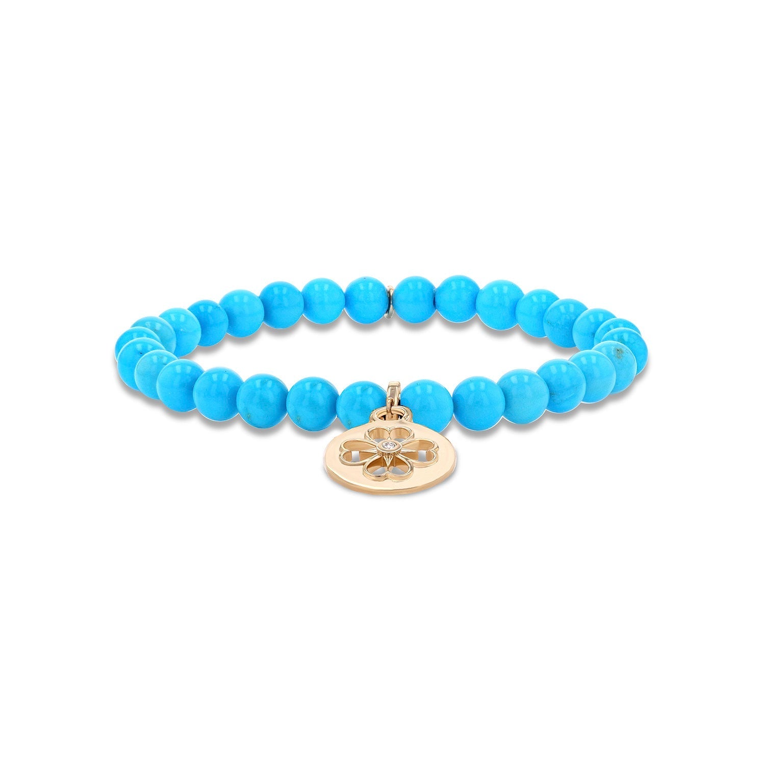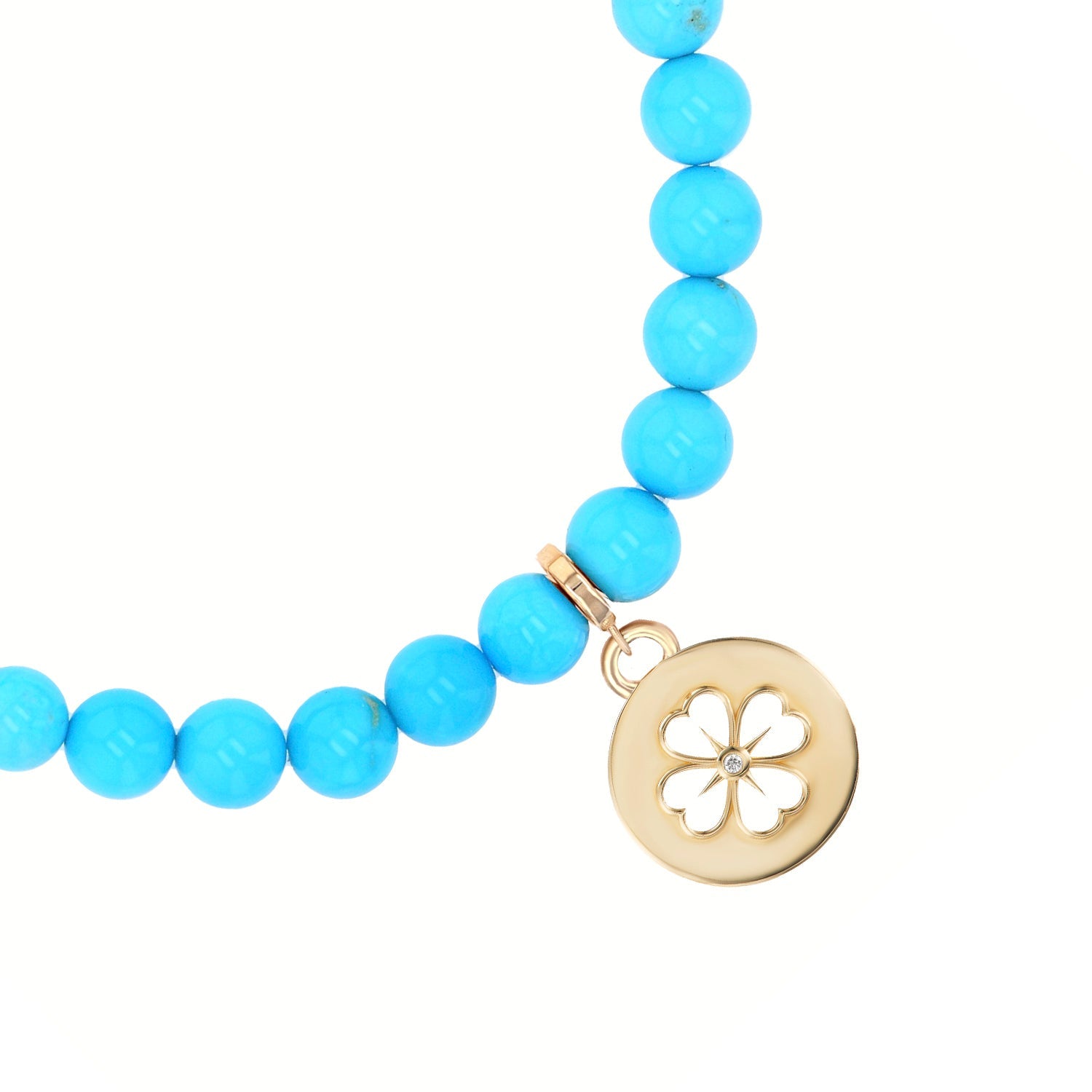 14k Sleeping Beauty Turquoise Bracelet with Open Clover Charm - 6mm