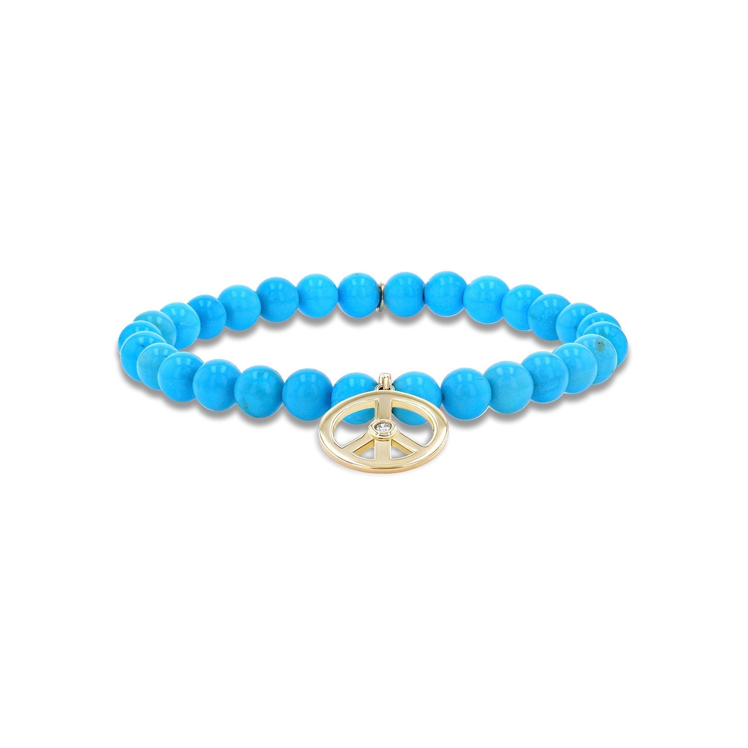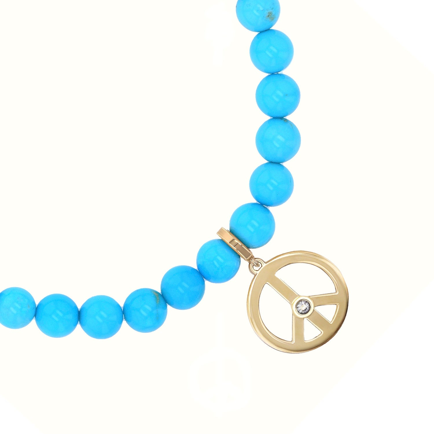14k Sleeping Beauty Turquoise Bracelet with Peace Sign Charm - 6mm