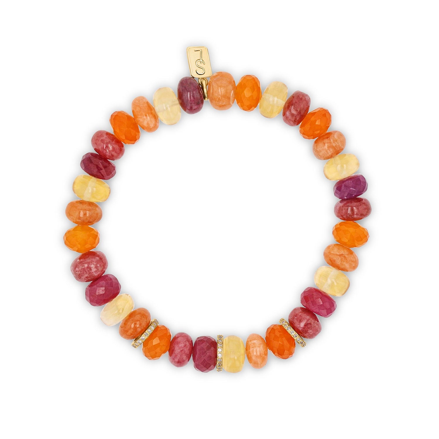 14k Sunset Mix Gemstone Bracelet with Diamond Rondelles