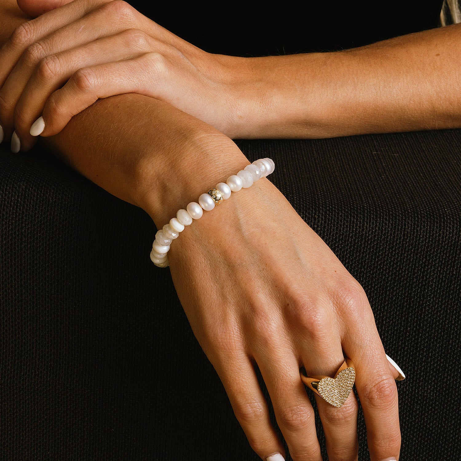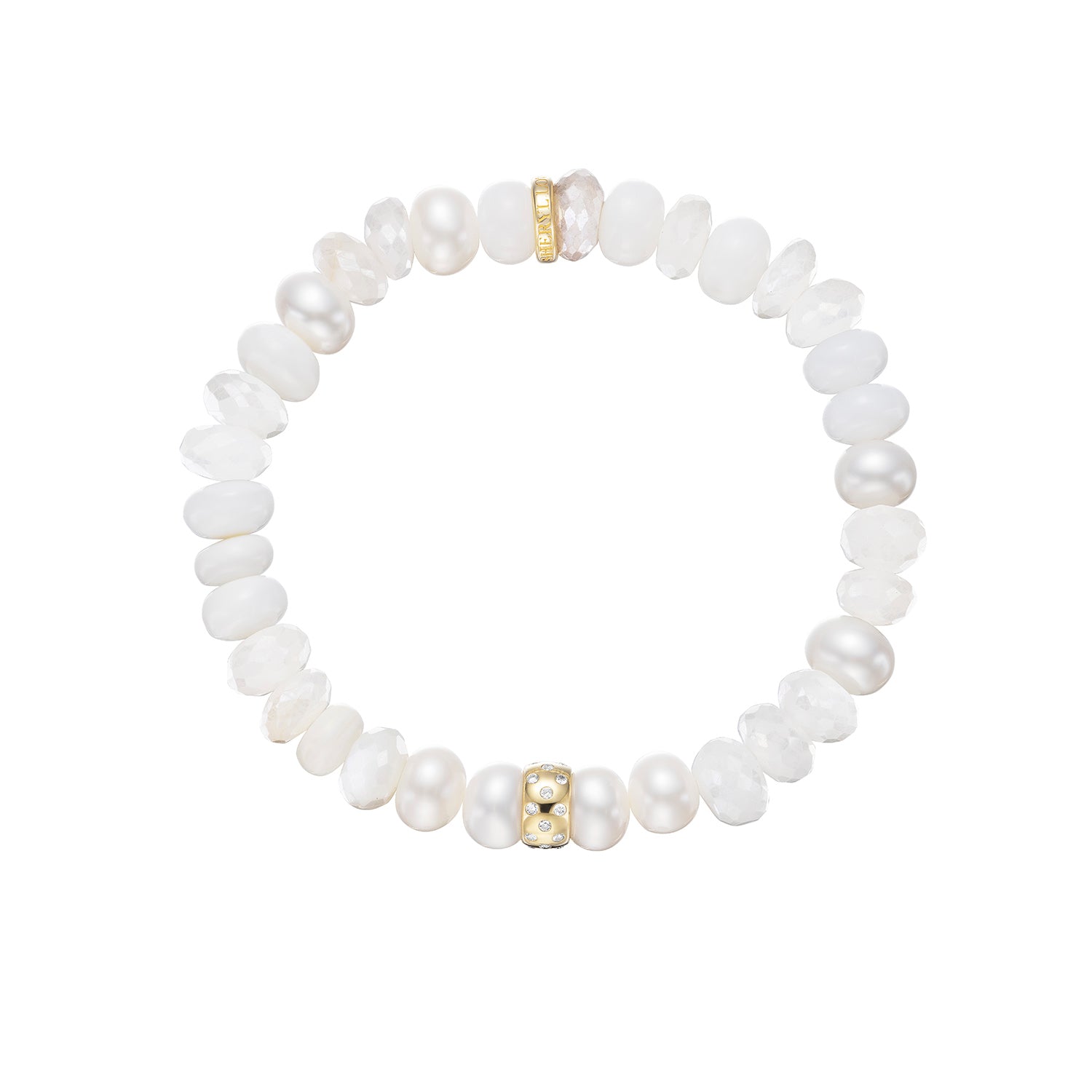 14k White Mix Gemstone Beaded Bracelet with Diamond Rondelle - 8mm