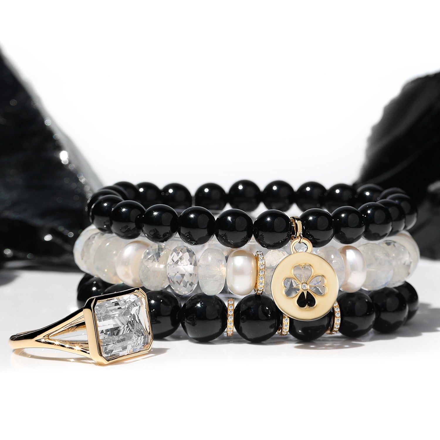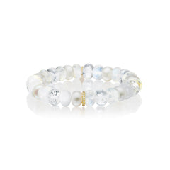 14k White Mix Gemstone Bracelet with Diamond Rondelle - 10mm