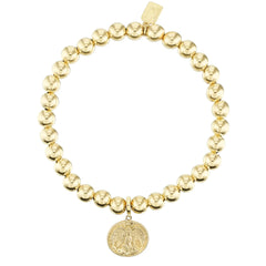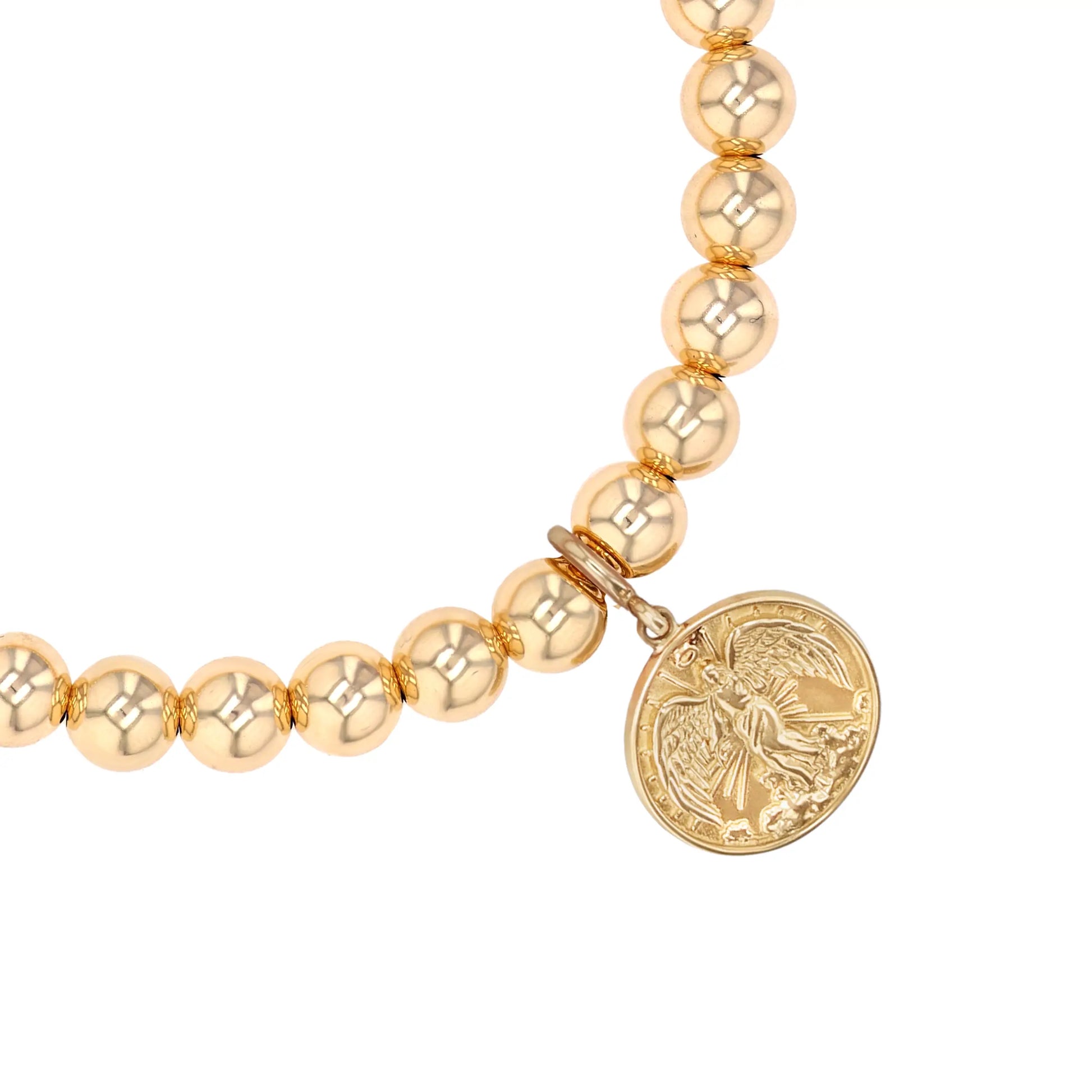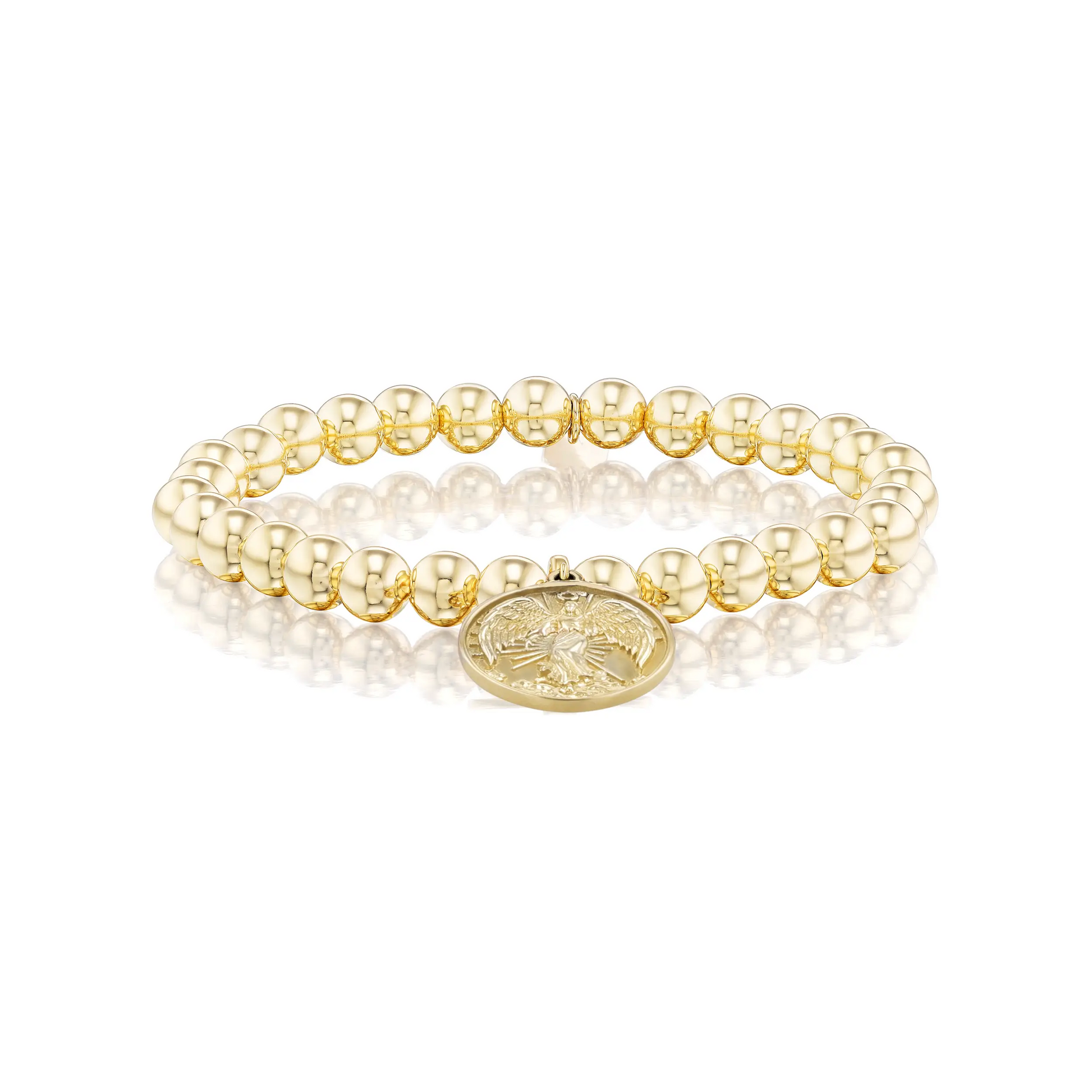 14k Yellow Gold Beaded Bracelet with Guardian Angel Charm - 6mm