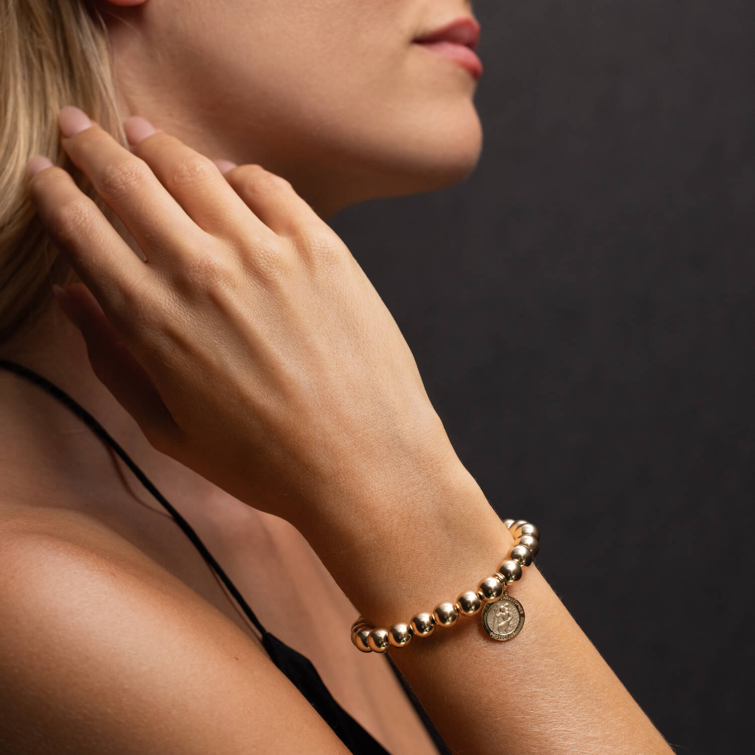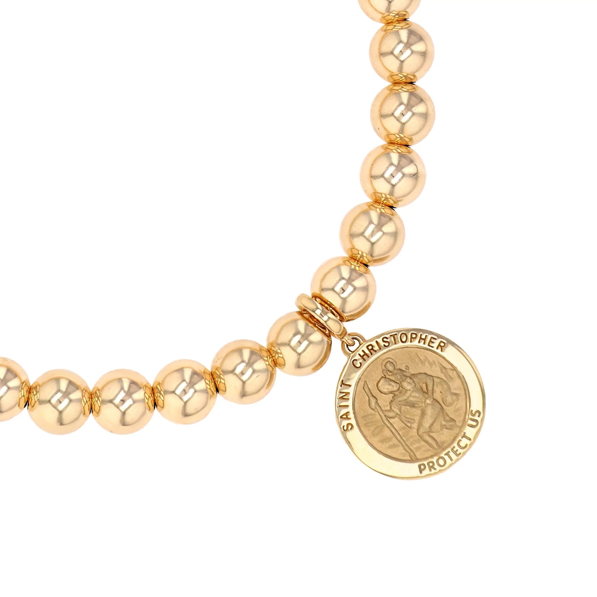 14k Yellow Gold Beaded Bracelet with St. Christopher Charm - 6mm